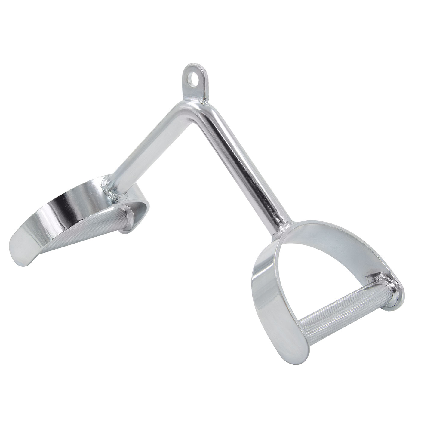 Accesorio de entrenamiento para fortalecer y tonificar los músculos del tríceps. Fabricado en acero de alta resistencia con recubrimiento cromado y agarres antideslizantes.