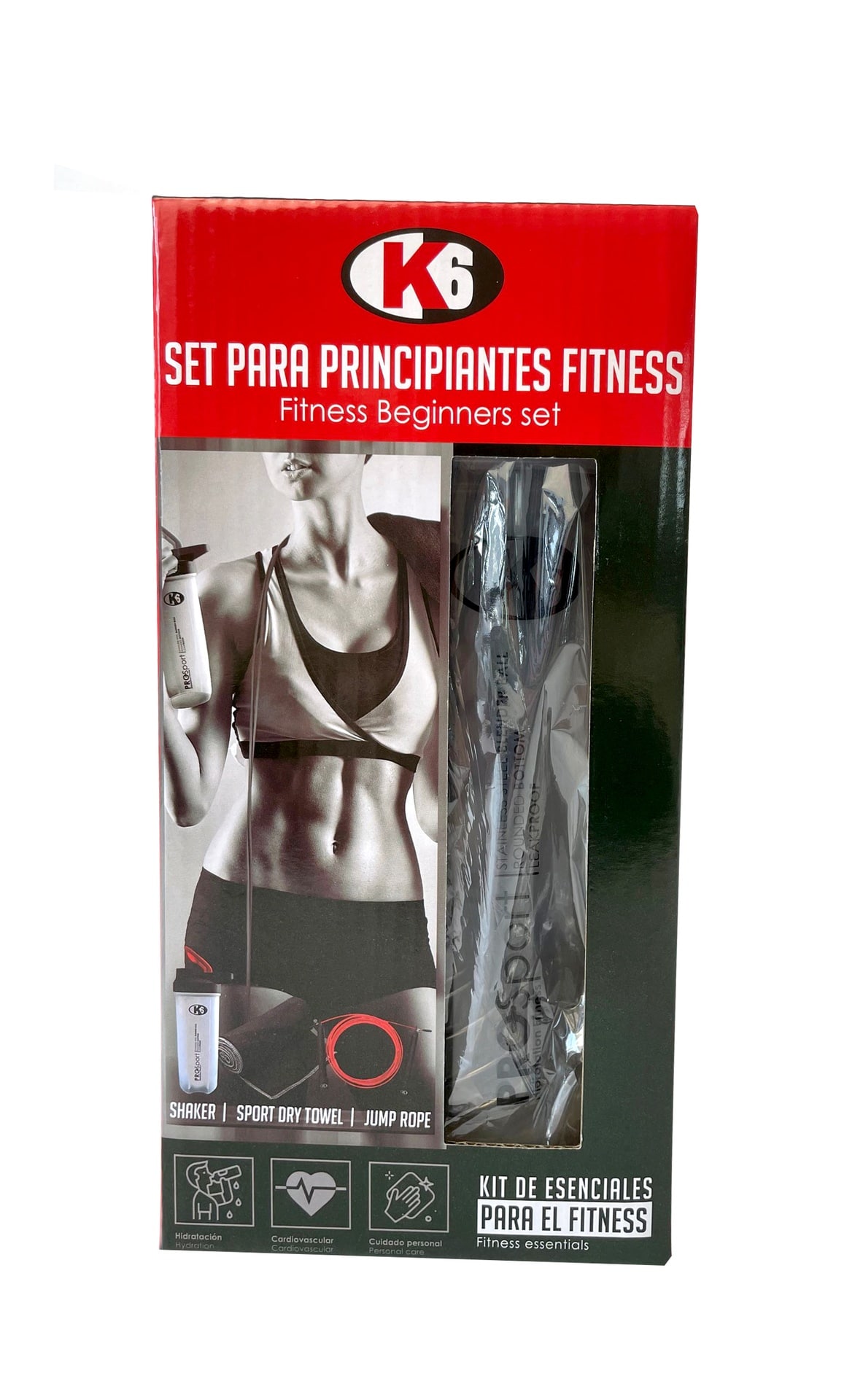 El Set Principiantes Fitness K6 es ideal para quienes inician su entrenamiento en casa. Incluye una cuerda para cardio intenso, una toalla absorbente para el sudor y un shaker para tus bebidas. Este set completo te acompaña en cada paso de tu rutina fitness.