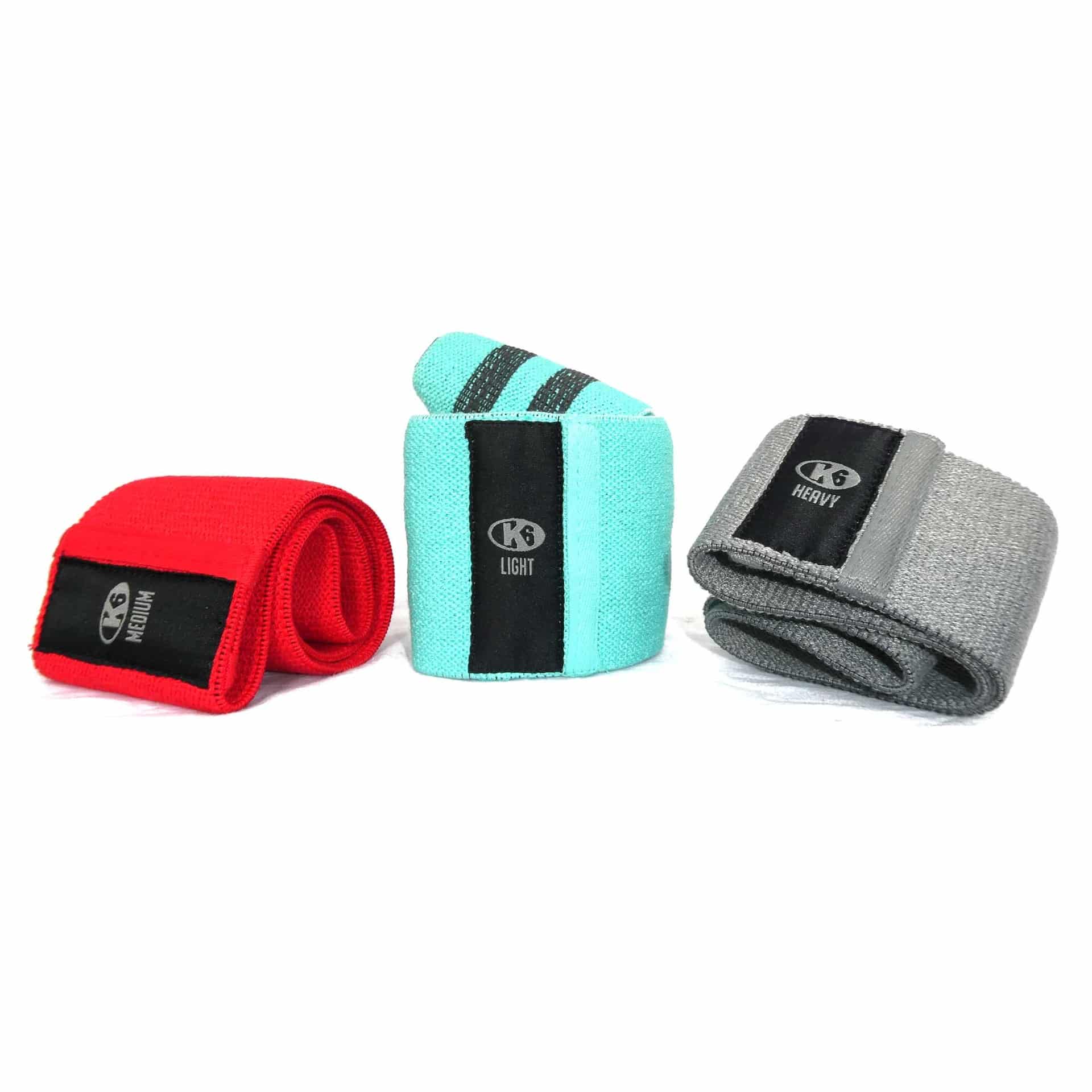Tonifica y fortalece glúteos y piernas eficazmente con el Set de Bandas de Tela K6. Ideales para usar solas o complementar tus rutinas de sentadillas, peso muerto y puentes de glúteo.