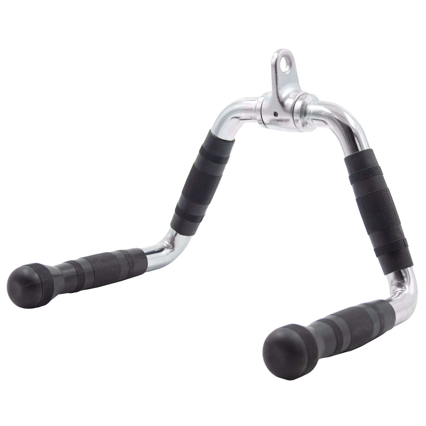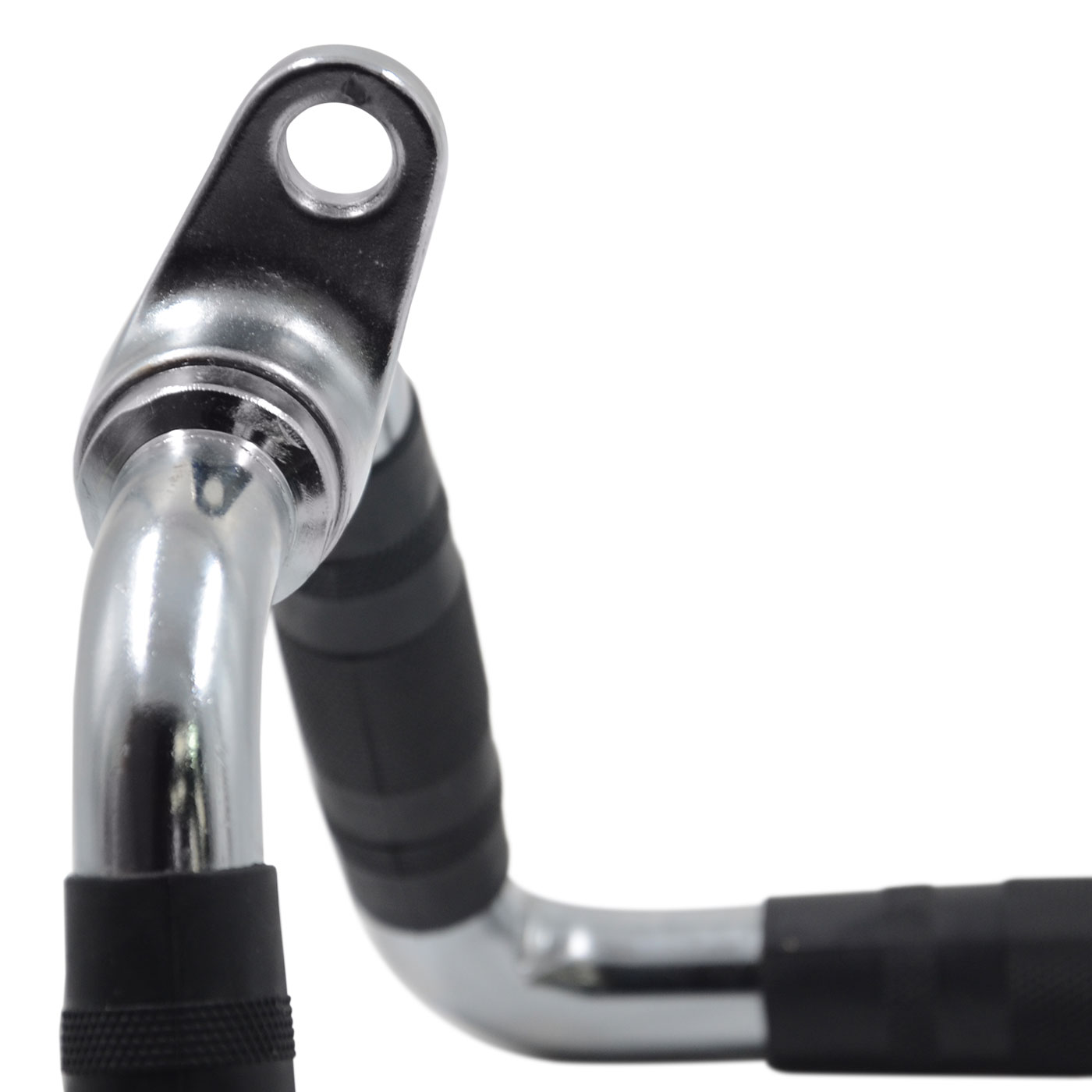 La Adaptación Polea 90 es un accesorio ideal para entrenamientos de fuerza, fabricado en acero de alta resistencia con recubrimiento cromado y 2 tipos de agarres en caucho antideslizante. Compatible con cualquier máquina de poleas.