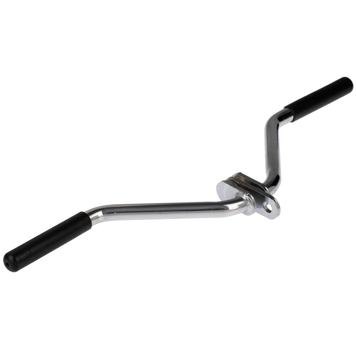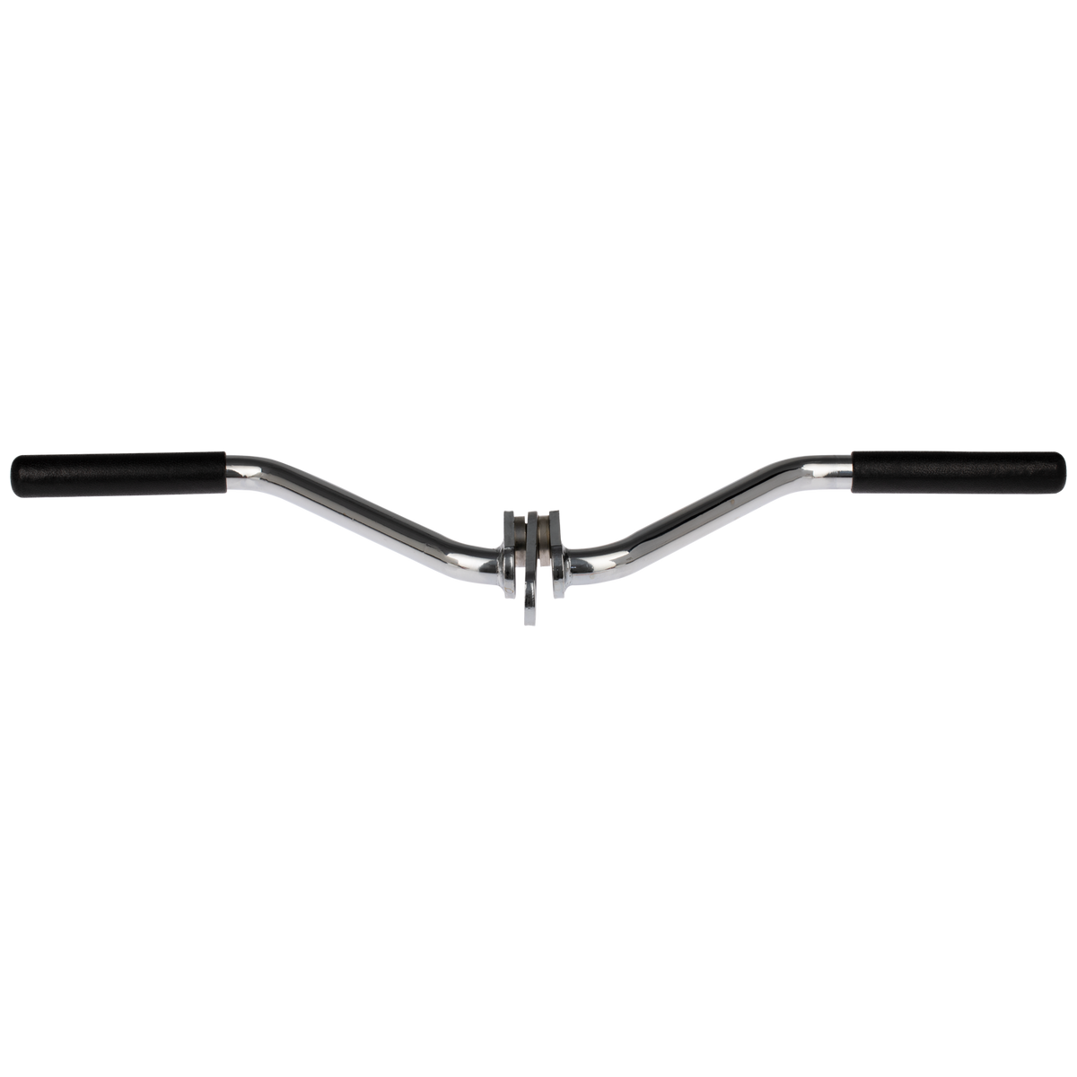 Esta adaptación corta semi curva ofrece un agarre ergonómico y seguro para tus rutinas de fuerza. Fabricada en acero de alta resistencia con agarres de caucho, garantiza durabilidad y confort. Ideal para complementar tu equipo de entrenamiento y optimizar cada repetición. Sus dimensiones compactas la hacen versátil y fácil de integrar.