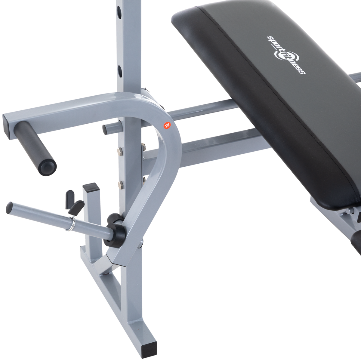 - Accesorios incluidos: Polea alta para peso libre, soporte de discos estándar 1″, soporte fijo para barras
