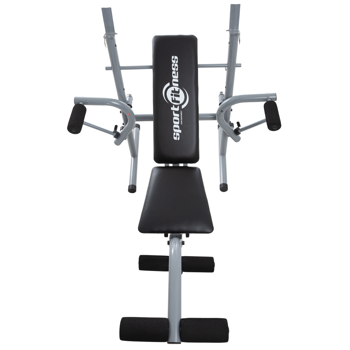 El Banco de Ejercicio Múltiple Sportfitness es ideal para potenciar tus entrenamientos de fuerza. Su diseño robusto y versátil permite realizar una gran variedad de ejercicios, desde press de banca hasta extensiones de piernas, trabajando diversos grupos musculares.