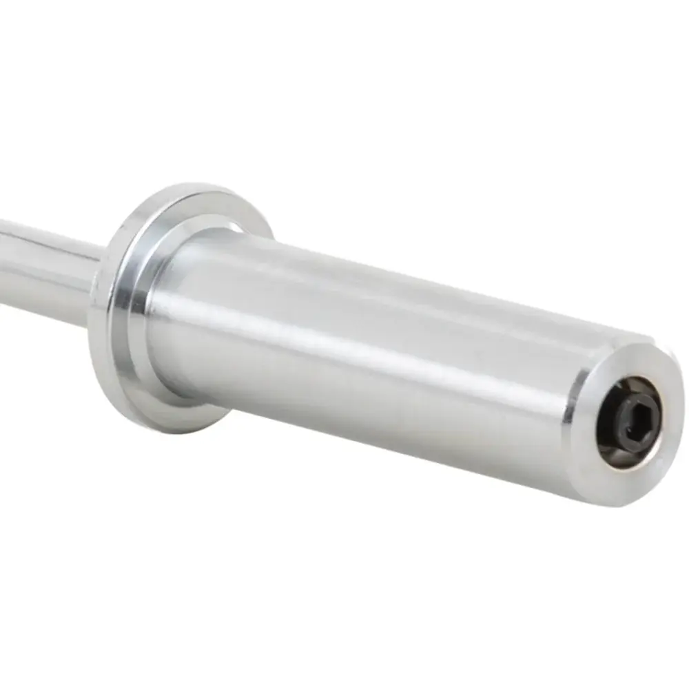 Diseñada para discos olímpicos de 2 pulgadas, cuenta con manguitos giratorios para minimizar la tensión en los antebrazos durante los levantamientos. El agarre moleteado garantiza una sujeción firme y segura en todo momento.