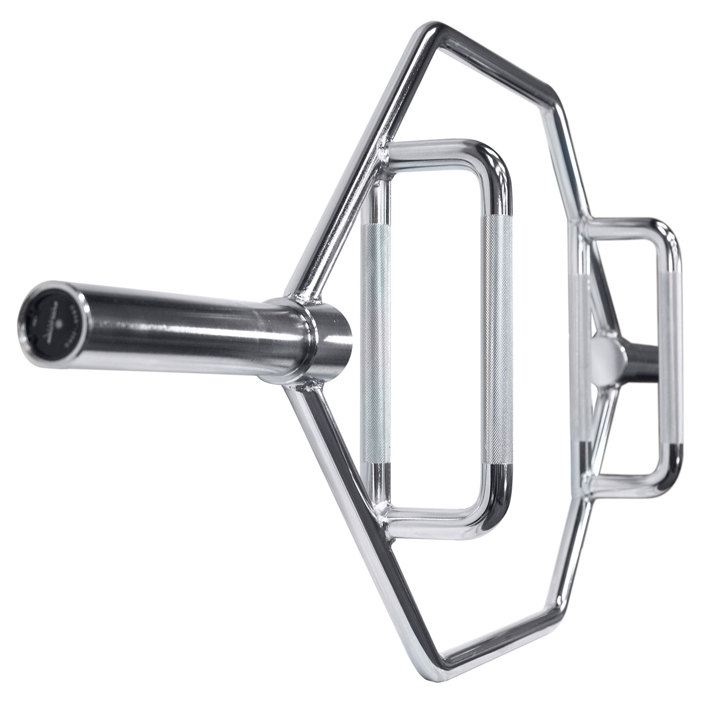 La barra olímpica hexagonal está diseñada para proporcionar una mayor estabilidad y comodidad durante ciertos ejercicios de levantamiento de pesas, como el peso muerto y el encogimiento de hombros.
