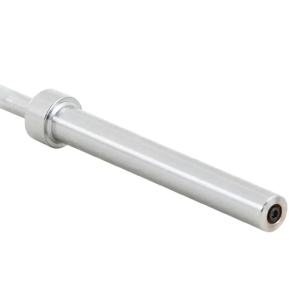 Su compatibilidad con el estándar olímpico de 2 pulgadas (50 mm) te permite acceder a una vasta gama de discos de pesas, asegurando la integración con tu equipo existente o futuro. Además, los manguitos giratorios (Spinning Sleeves) permiten que los discos roten independientemente de la barra. Esta característica es crucial ya que reduce significativamente la tensión en las muñecas y los antebrazos durante levantamientos como el peso muerto o el press, facilitando una progresión segura y efectiva en tu entrenamiento de fuerza.