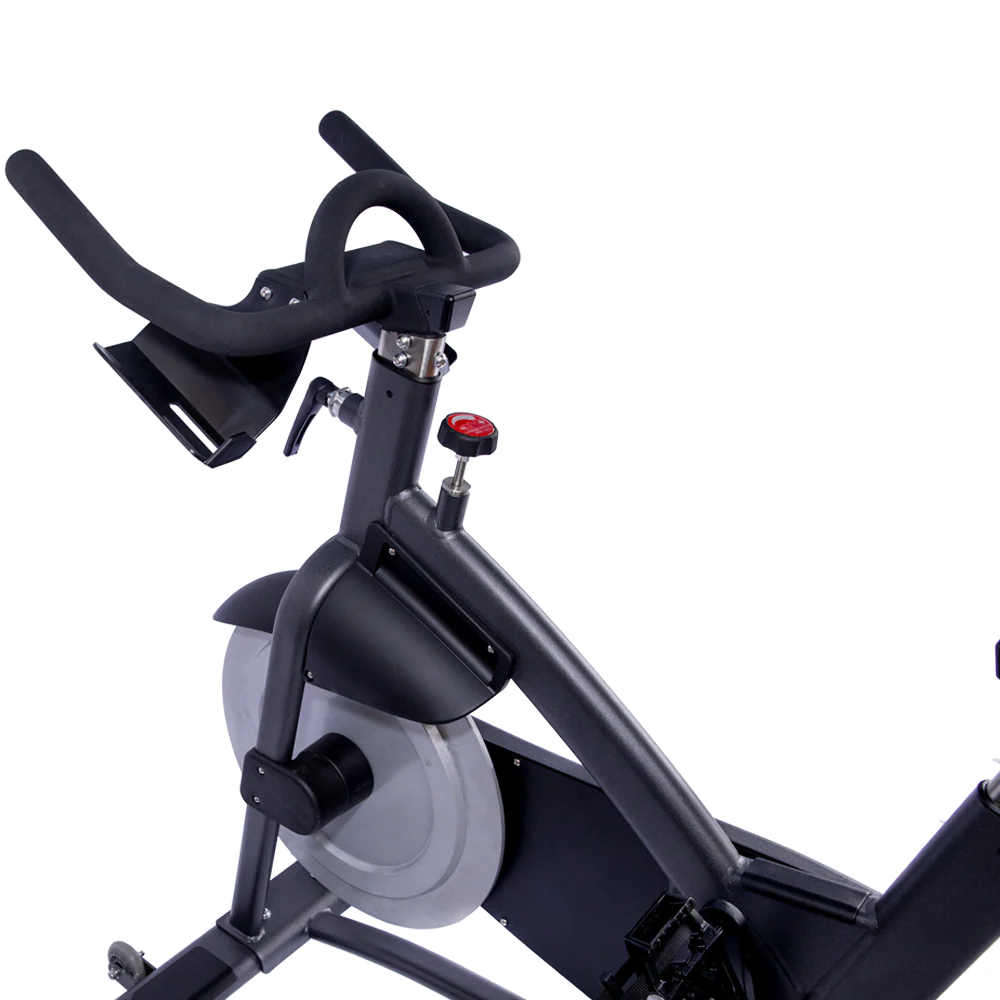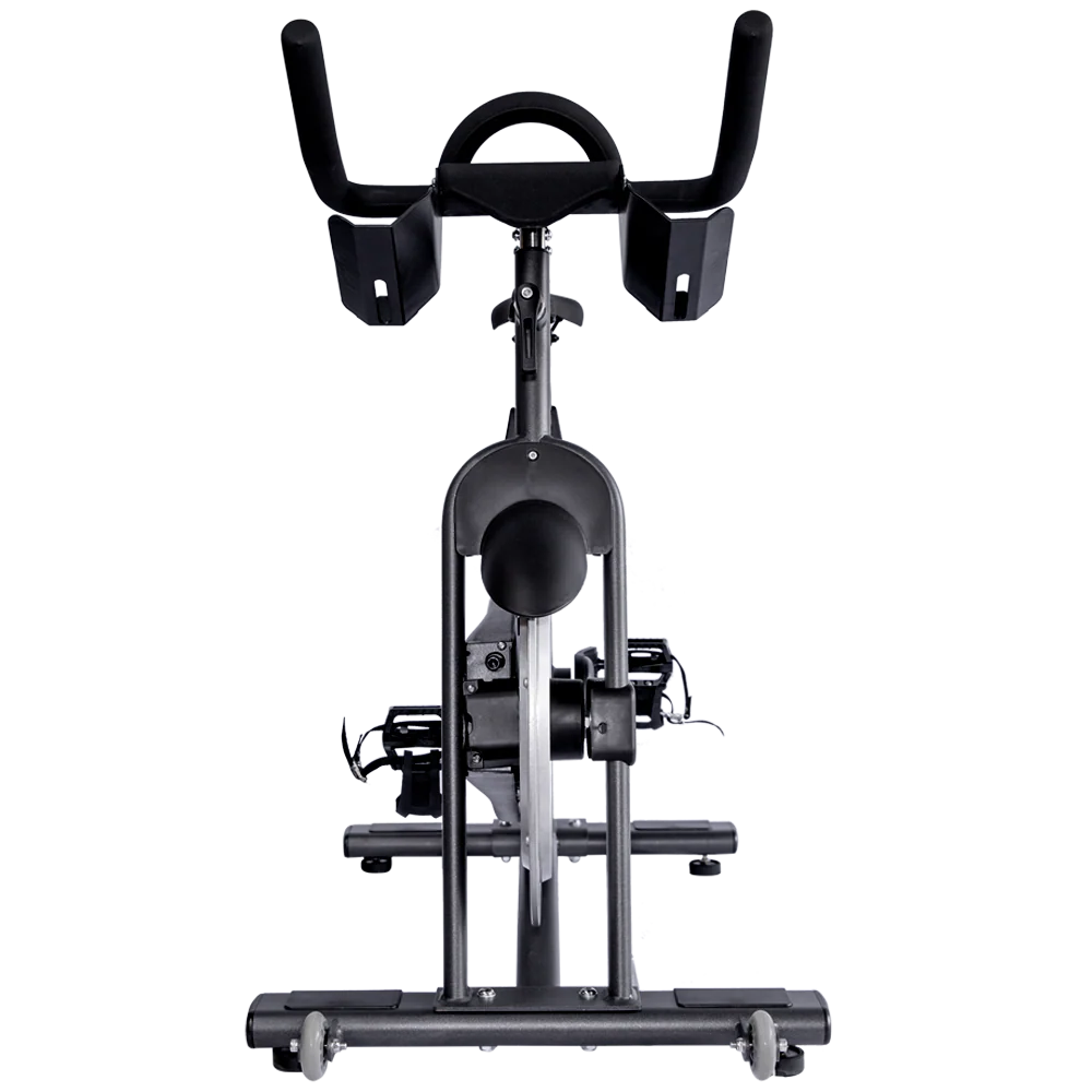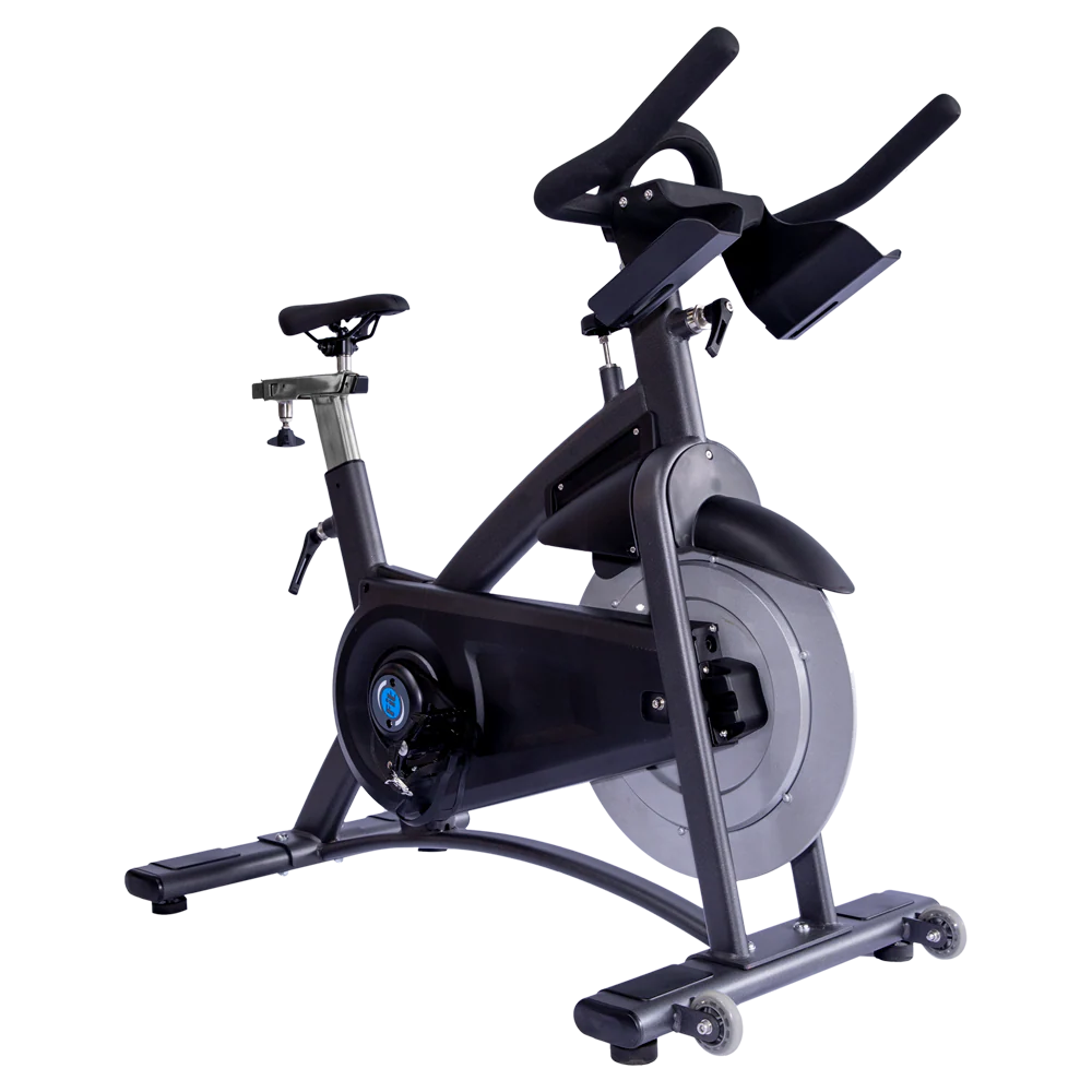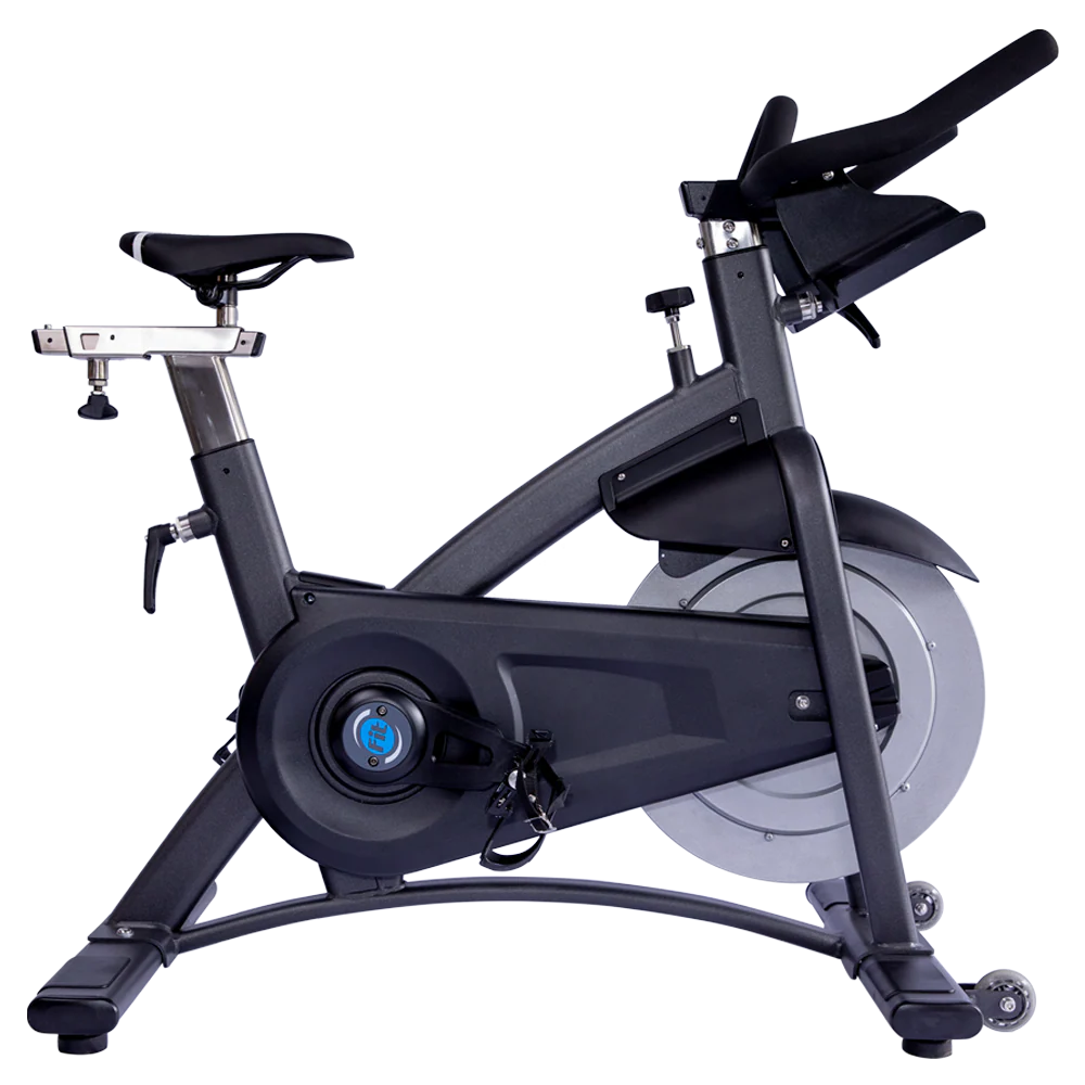 Fabricada con estructura de hierro de alto tráfico y pintura electrostática, esta bicicleta soporta hasta 130 kg de usuario y está pensada para un uso profesional en gimnasios, hoteles o estudios de entrenamiento.