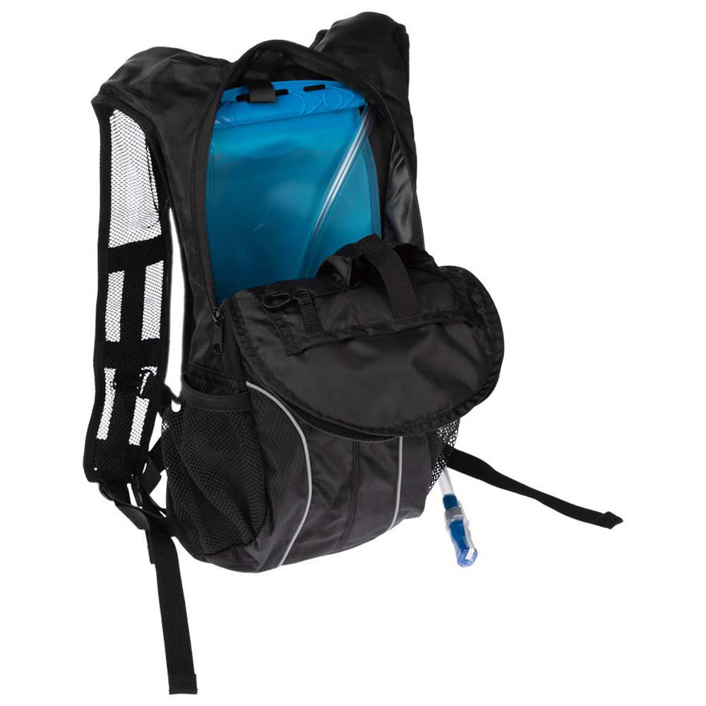 En su interior, además de la vejiga, encontrarás espacio suficiente para guardar una chaqueta rompevientos, gafas, protector solar, mangas y otros artículos indispensables. Los dos bolsillos laterales de malla son perfectos para un termo adicional o para separar ropa húmeda. Sus tirantes ergonómicos y ajustables, junto con una correa en la cintura, garantizan un ajuste cómodo y seguro durante cualquier actividad, convirtiéndolo en tu compañero ideal para mantenerte hidratado.