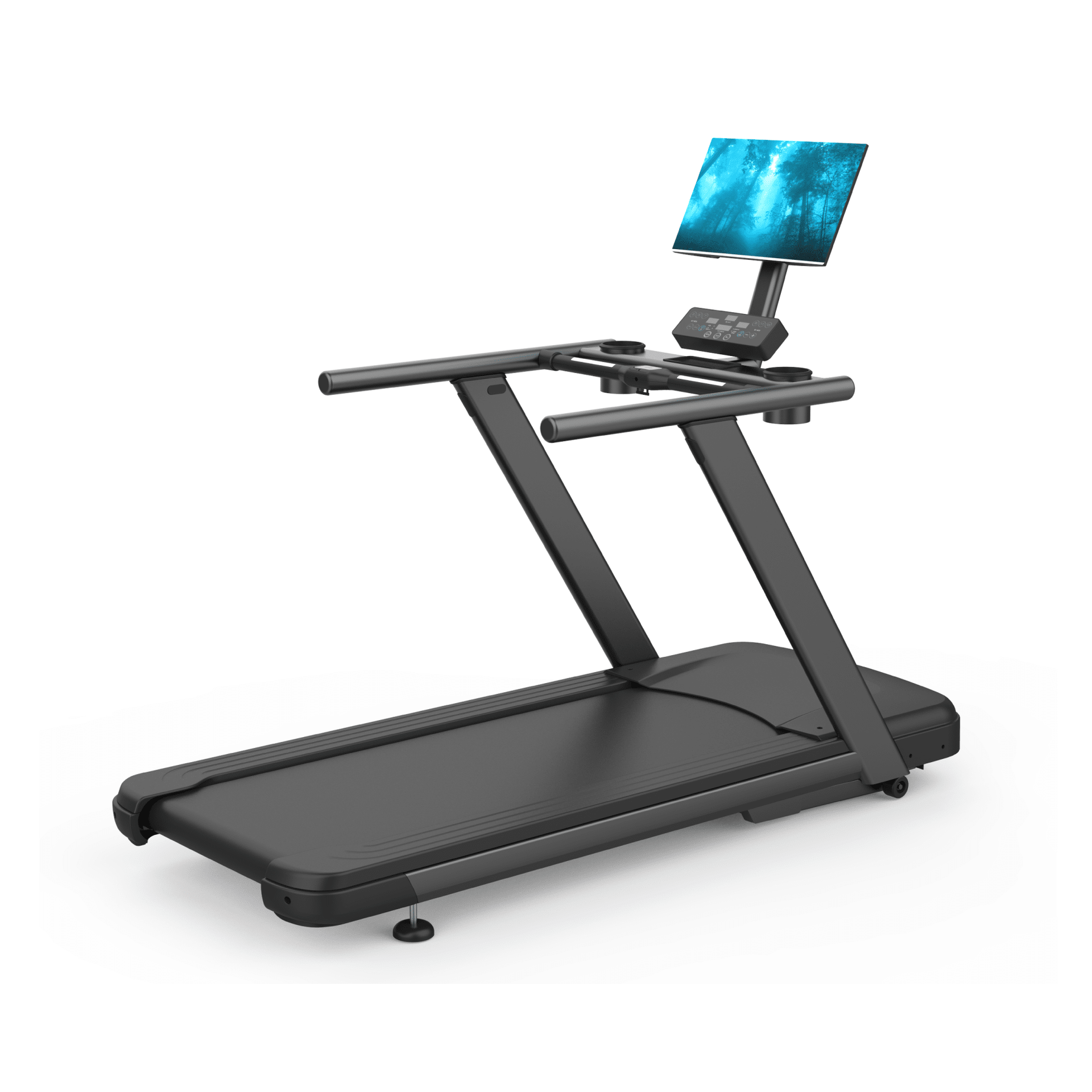La experiencia tecnológica y visual de la Trotadora con Pantalla e Inclinación Eléctrica K6 Professional se complementa con la regulación automática de velocidad e inclinación, creando simulaciones realistas de trote. Diseñada para soportar los entrenamientos más exigentes, su construcción robusta garantiza una durabilidad «Heavy Duty», funcionando hasta 12 horas continuas con mínimo mantenimiento. Incorpora controles de ritmo cardíaco por agarre y una consola táctil independiente para ajustar parámetros y monitorear el rendimiento en tiempo real, incluyendo tiempo, velocidad, distancia, calorías y frecuencia cardíaca.