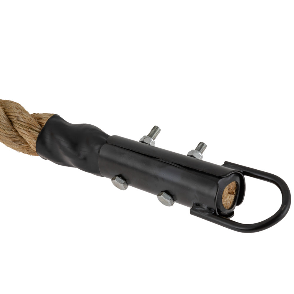 Su robusto diseño incorpora hilos altamente resistentes al desgaste, lo que no solo garantiza una durabilidad excepcional, sino también un rendimiento constante y fiable en los entrenamientos más exigentes. Fabricada en fique y equipada con topes de plástico y hierro, esta cuerda está construida para soportar un uso intensivo y prolongado.