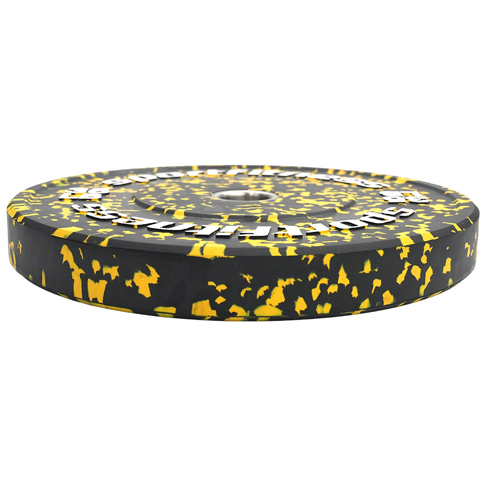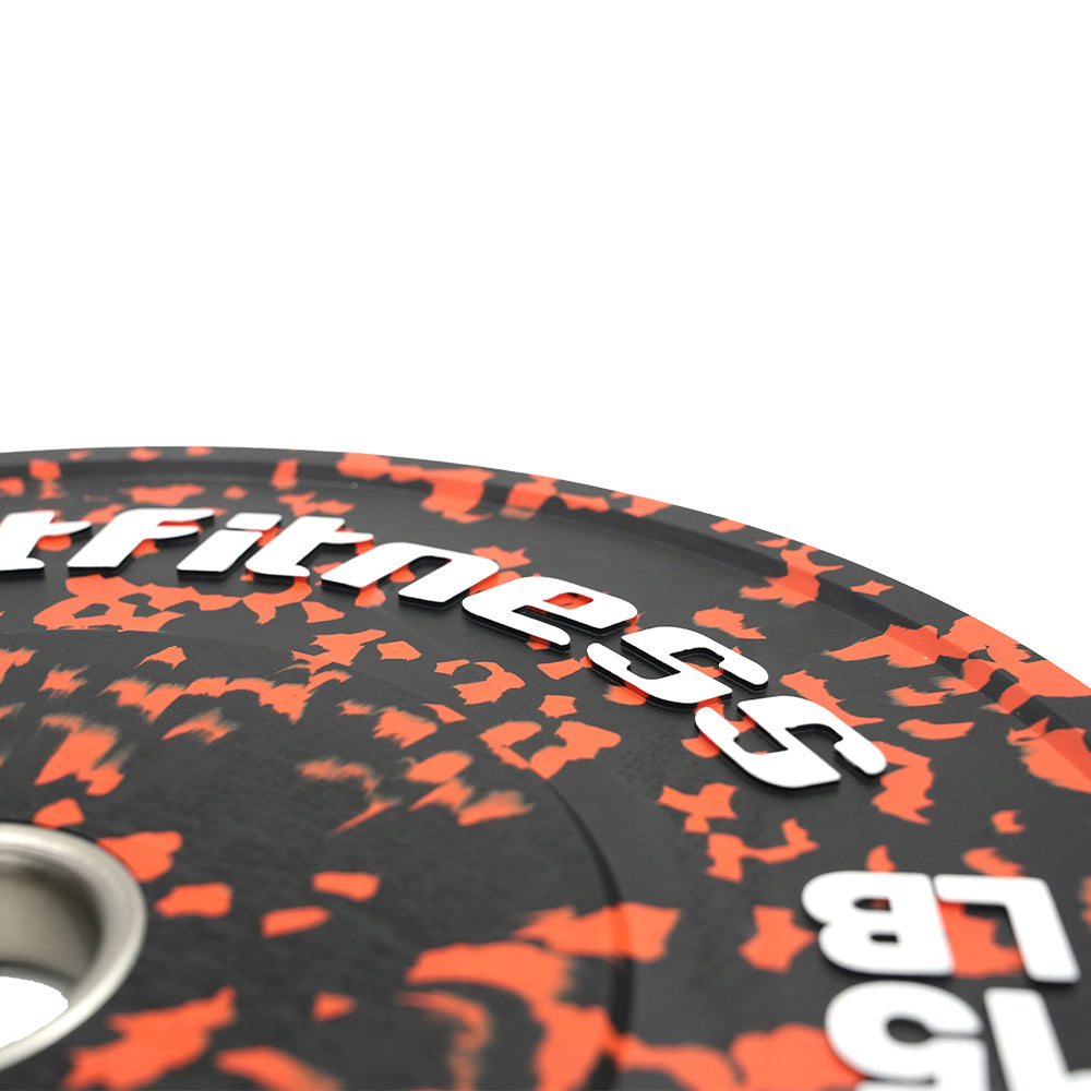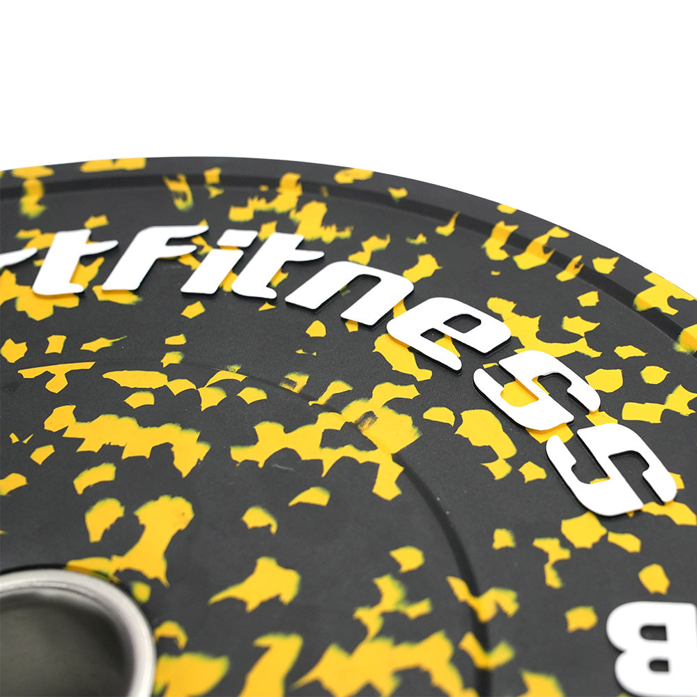 Fabricados con una robusta combinación de caucho, carbonato cálcico y acero, estos discos no solo son visualmente atractivos, sino que también ofrecen una fiabilidad superior. Pueden soportar hasta 8.000 impactos desde una altura de 1.8 metros sin comprometer su integridad, lo que asegura una larga vida útil incluso bajo uso profesional intenso. El anillo central de acero de alta resistencia es compatible con barras olímpicas estándar de 2 pulgadas (50 mm), facilitando su uso.