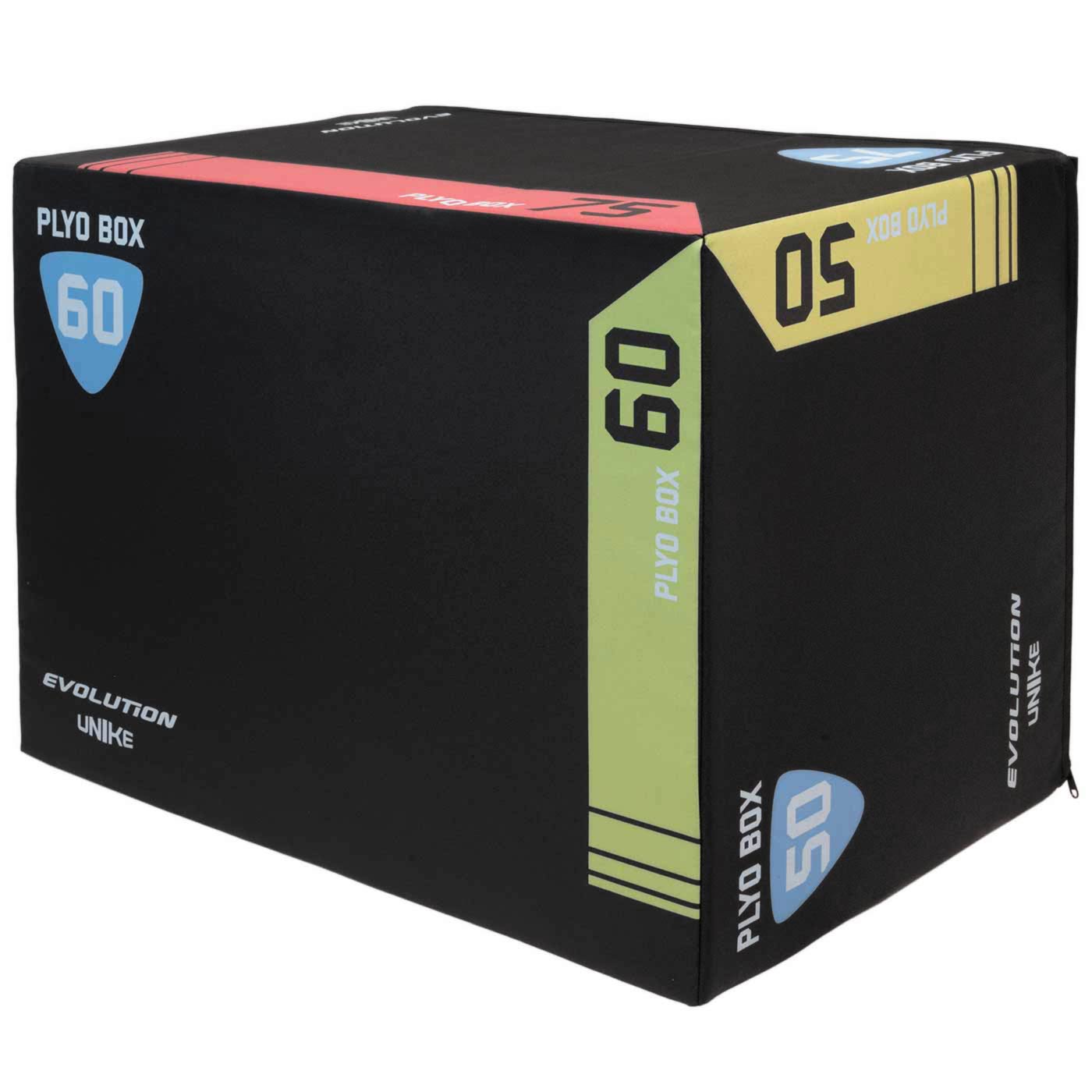 La caja blanda UNIKE es un cajón pliométrico recubierto de espuma y textil artificial antideslizante; es un elemento multifuncional esencial a la hora de buscar desarrollar la fuerza explosiva, potencia aeróbica, quema de calorías, tonificación muscular, estiramientos y rutinas de cardio. La cubierta suave amortigua el impacto y protege las espinillas y rodillas en esos saltos fallidos.