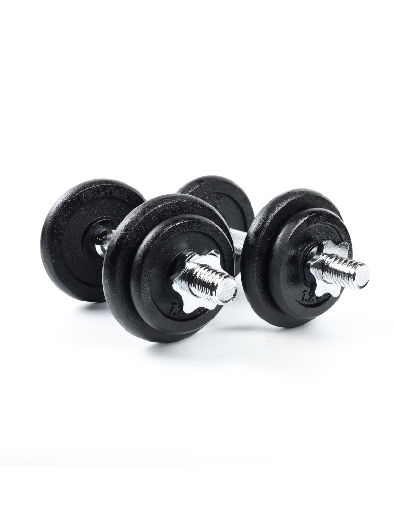 Cada kit incluye una barra estándar de 35 cm, acompañada de cuatro discos de 1.25 kg y cuatro discos de 2.5 kg, permitiéndote ajustar el peso según tus necesidades. Los dos collarines incluidos garantizan que los discos permanezcan firmes durante todo tu entrenamiento, proporcionando una experiencia segura y efectiva.