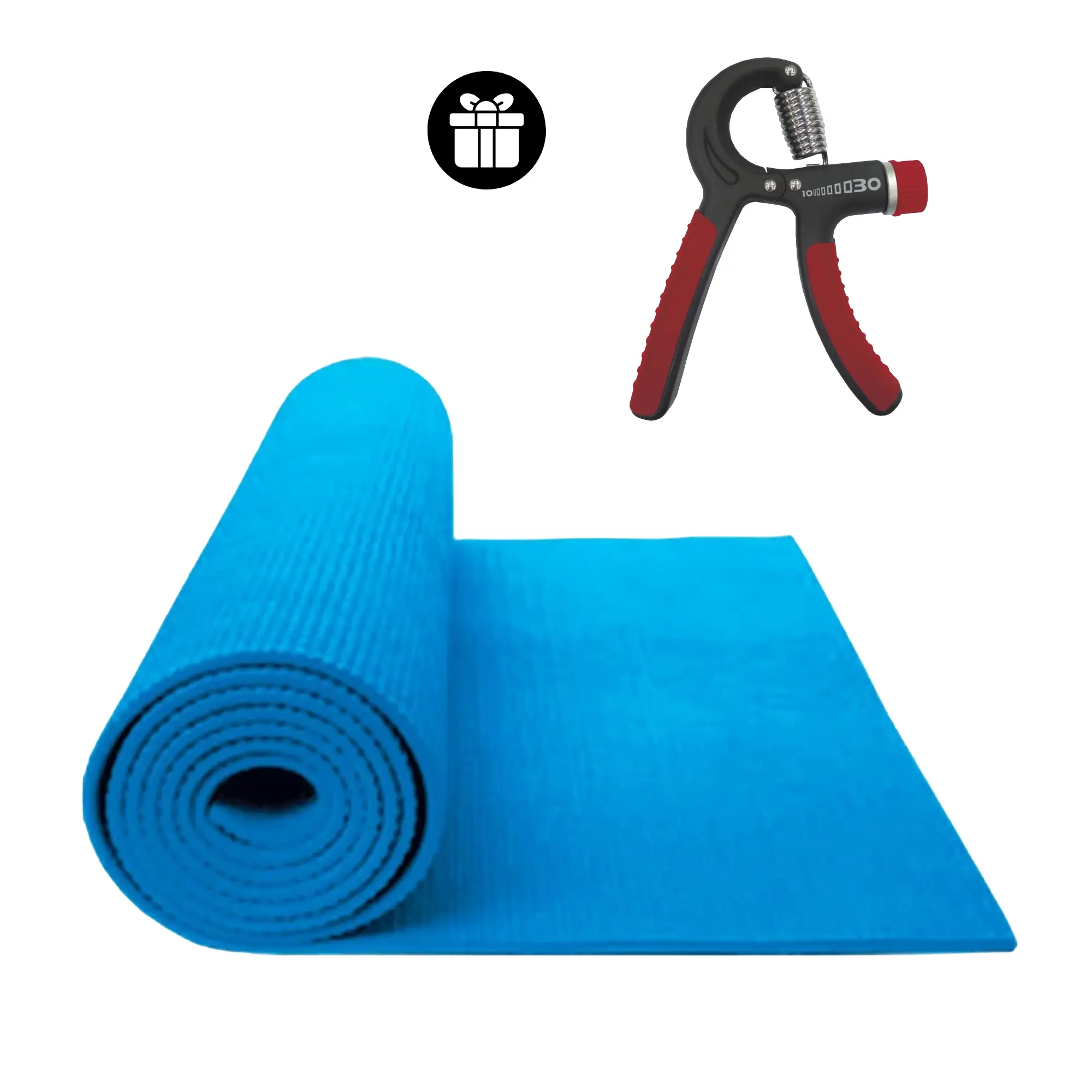 Este kit K6 combina la comodidad de una colchoneta de yoga de 3 mm de PVC, ideal para estiramiento y relajación, con un handgrip ajustable para entrenamiento de fuerza.