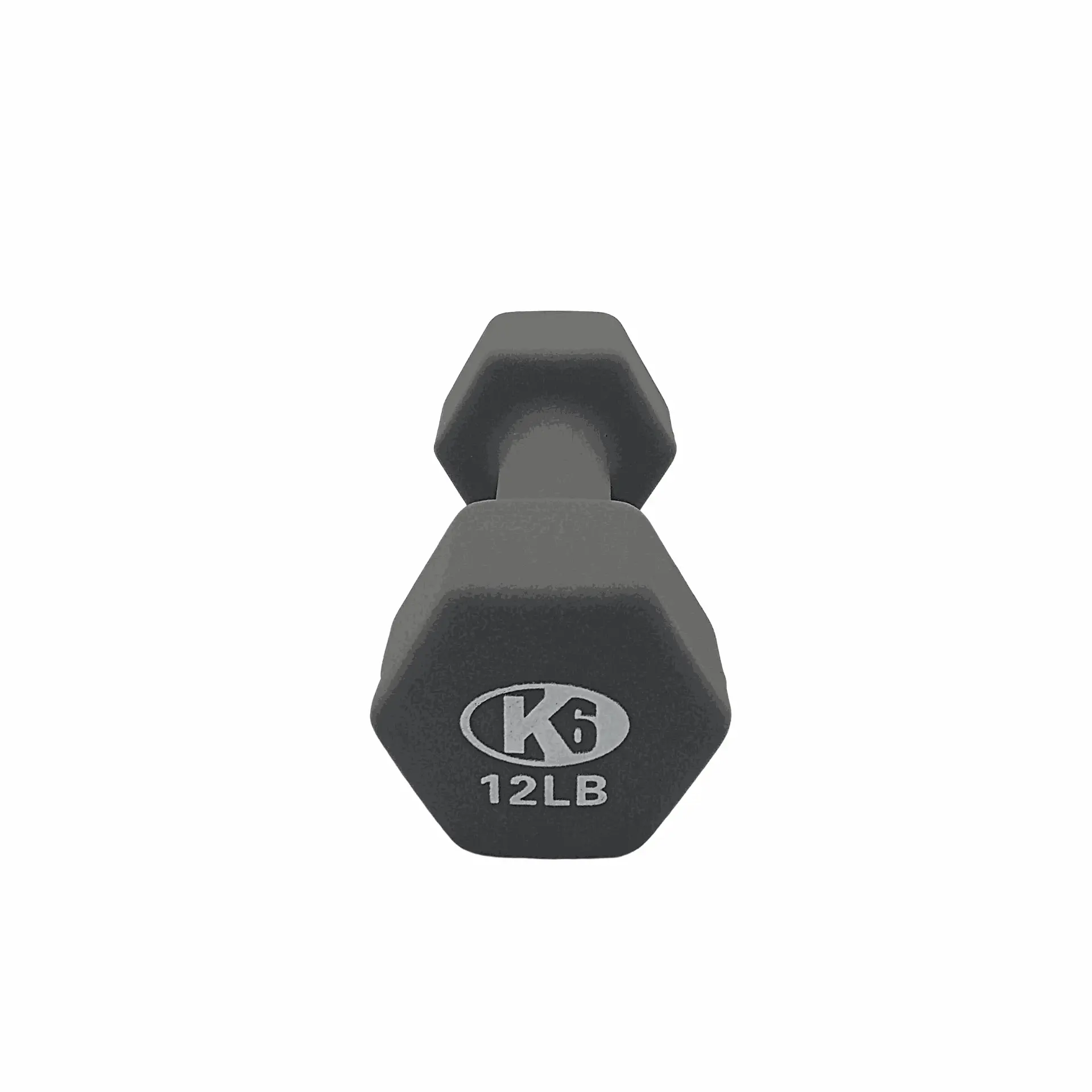 Esta mancuerna K6 de 12 Lb ofrece un núcleo sólido de hierro fundido con un recubrimiento de neopreno premium. Su diseño hexagonal robusto garantiza que no ruede, mejorando la seguridad en tu área de entrenamiento.