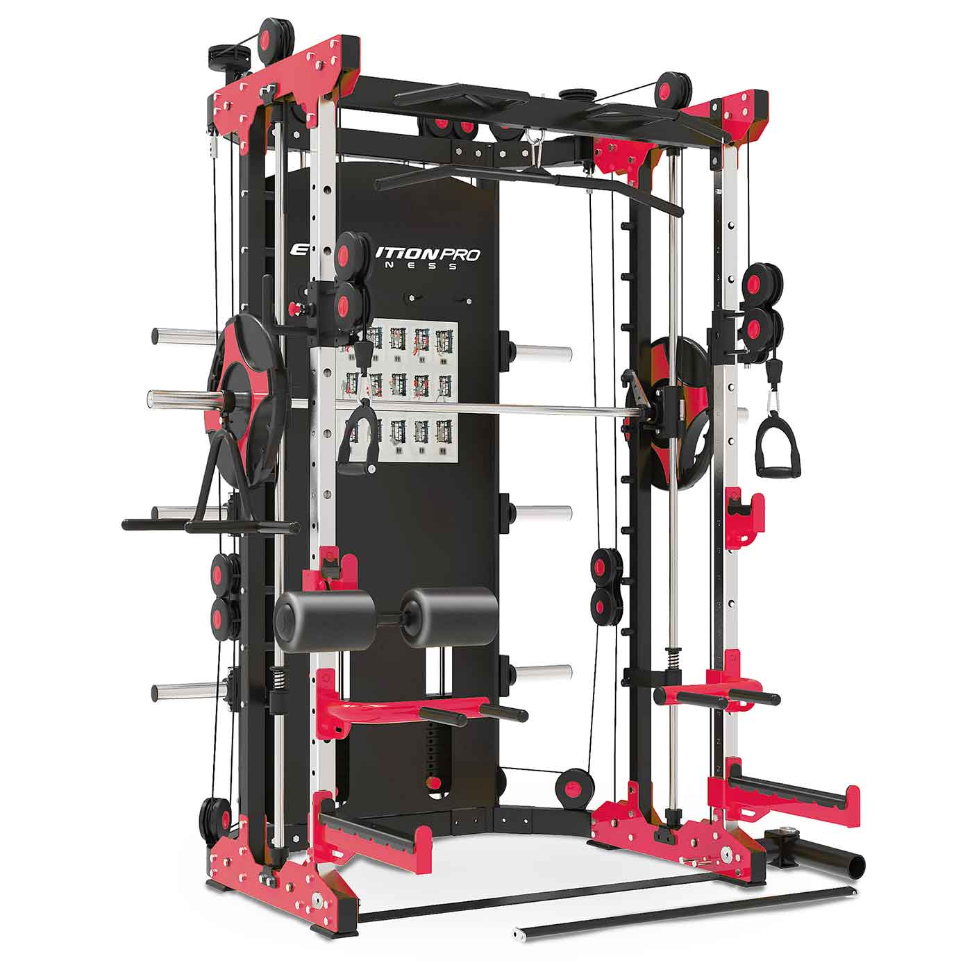 ¡Descubre el Multifuncional Smith Evolution EVO Pro BR, tu compañero definitivo para alcanzar tus metas fitness! Con una robusta estructura metálica de alta resistencia y pintura electrostática resistente a la abrasión, este equipo es tu garantía de durabilidad.