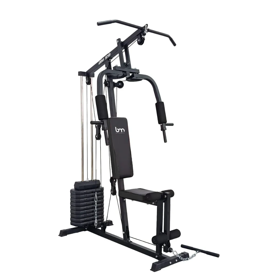 El Multigimnasio BM Fitness 519 está diseñado para entrenamientos completos en casa, ofreciendo múltiples estaciones de trabajo en un solo equipo. Incorpora una torre de peso de 120 libras, estructura metálica de alta resistencia y funciones para ejercitar los principales grupos musculares del cuerpo.