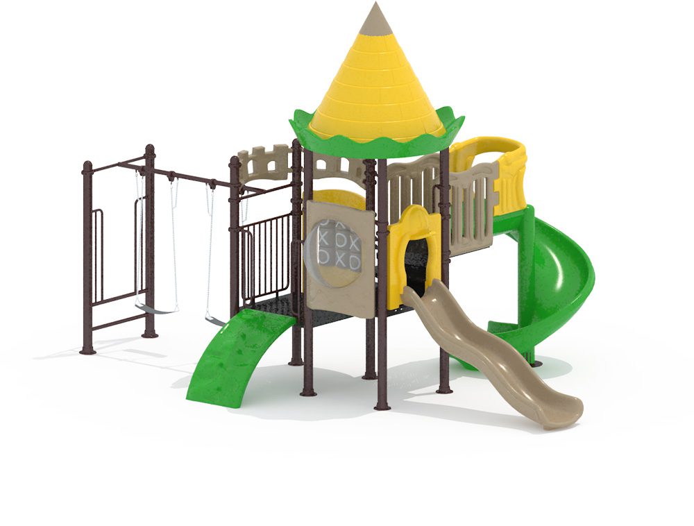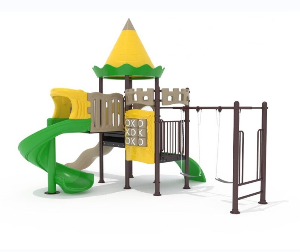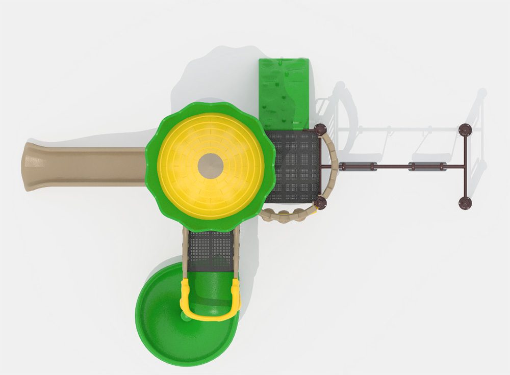Entre sus atractivos, encontrarás dos columpios que se mecen suavemente, invitando a la relajación y al disfrute de la brisa. Para los pequeños aventureros, el parque cuenta con un deslizador sencillo que promete diversión sin complicaciones y risas sinceras, además de un deslizador curvo que añade una emoción suave y segura, ideal para giros llenos de alegría.