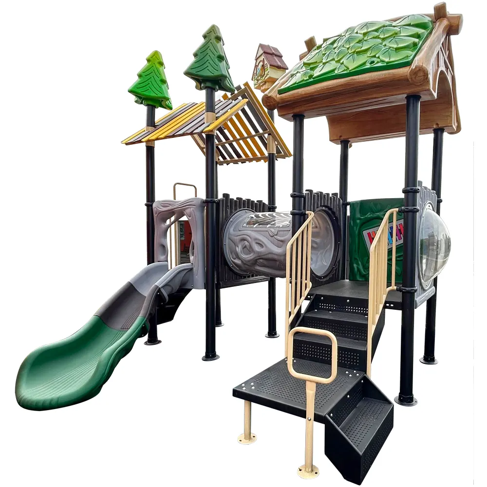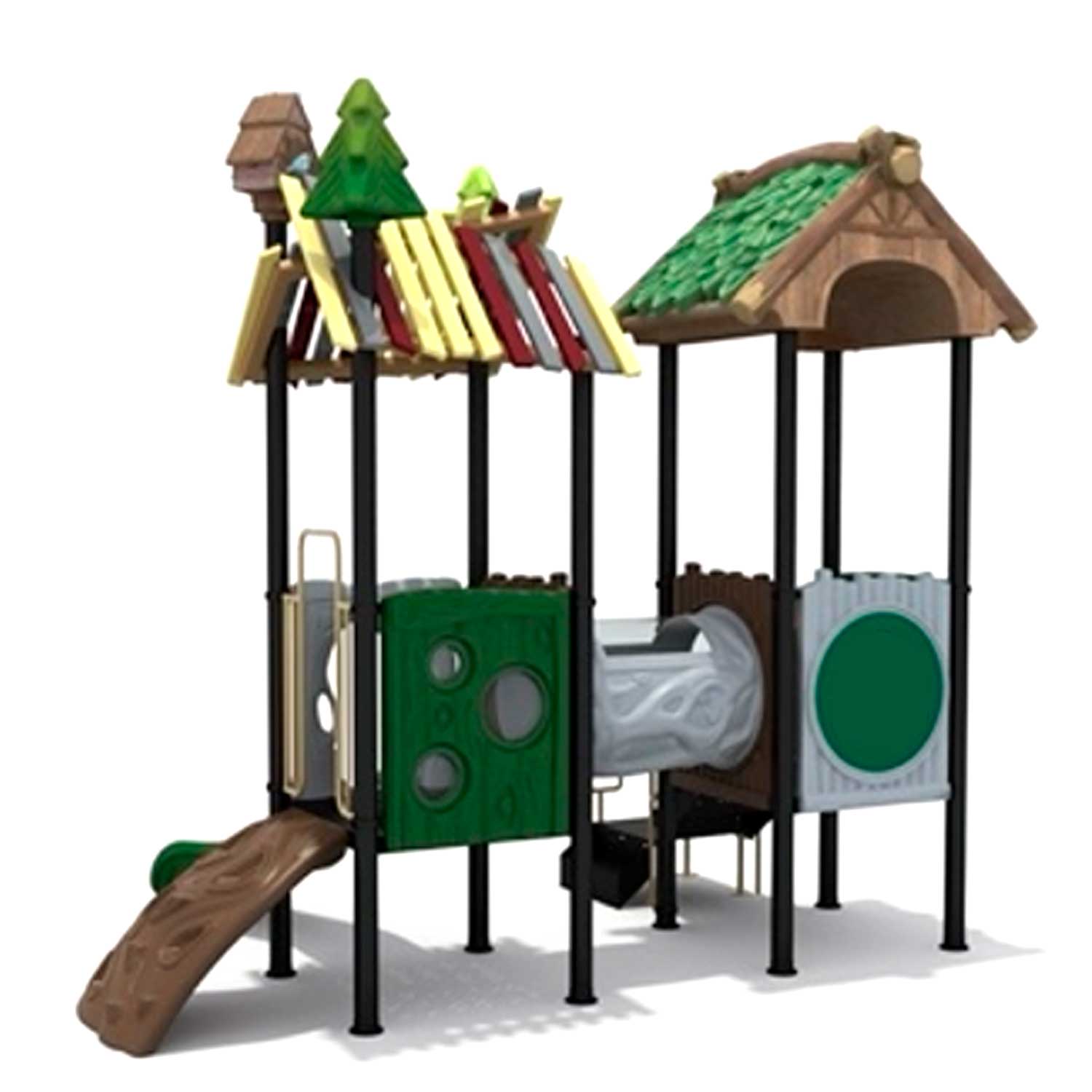 Equipado con dos plataformas elevadas, este parque ofrece diversas rutas de juego. Un emocionante deslizador curvo invita a descensos llenos de adrenalina, mientras que un desafiante muro de escalada y una práctica escalera de acceso proporcionan múltiples opciones para explorar y ejercitarse. Naturaleza es el escenario ideal para el desarrollo de habilidades motoras y la creatividad en un ambiente lleno de risas.