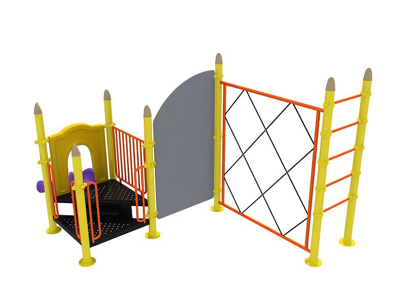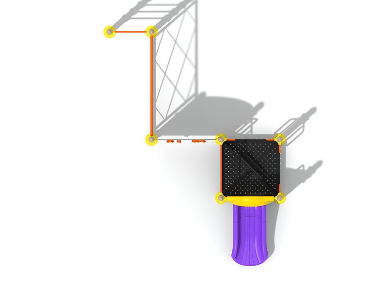 • Composición del conjunto: 7 publicaciones con mayúsculas, 1 tobogán individual con puerta, 1 rocódromo de PEAD, 1 valla metálica, 2 plataformas triangulares, 1 escalera de un paso, 4 postes pasamanos, 1 red de escalada, 5 barras de escalera para subir