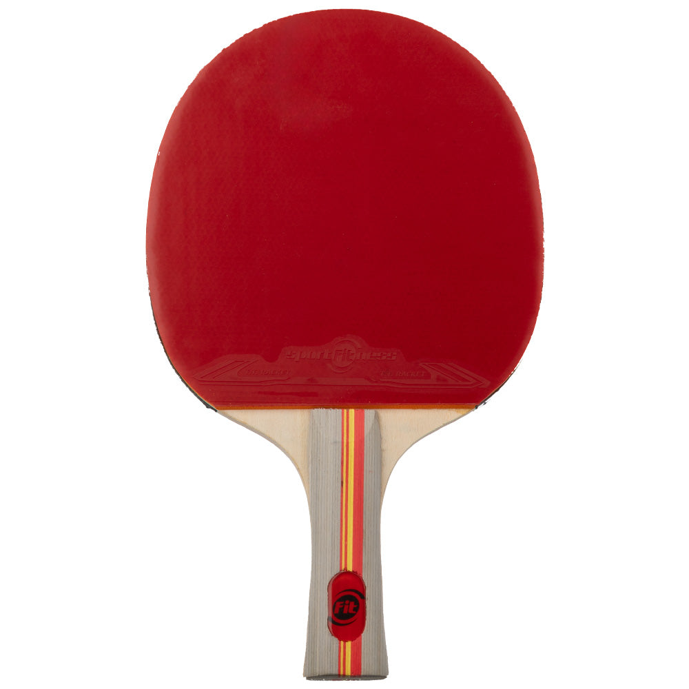 Este set de dos raquetas de tenis de mesa, planas y rígidas, está fabricado con madera resistente en su mango y estructura. Sus hojas de goma en colores rojo y negro cumplen con los estándares ITTF para competencias. Incluye dos raquetas y dos estuches con cremallera para un transporte y protección seguros.