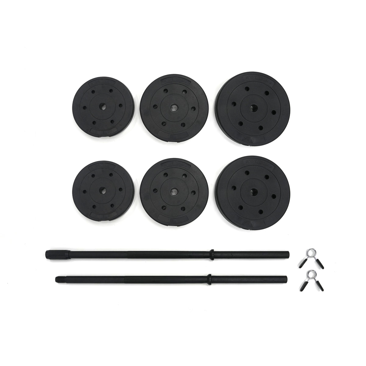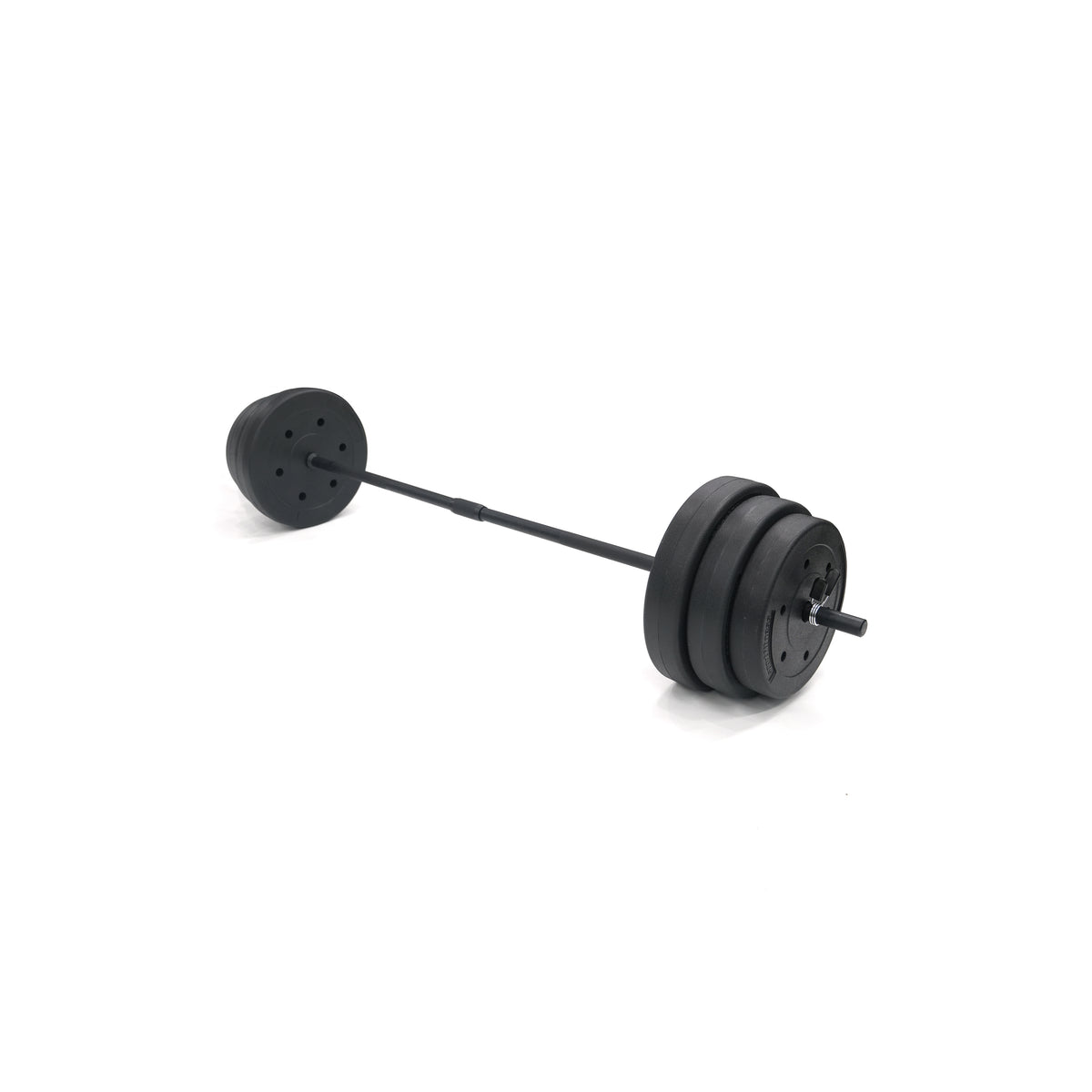 Cuenta con discos de cemento de alta resistencia y una barra robusta, garantizando durabilidad y seguridad en cada levantamiento. Es ideal para una amplia variedad de entrenamientos, desde rutinas de levantamiento de peso básicas hasta ejercicios más complejos, permitiéndote progresar y ajustar la carga según tus necesidades.