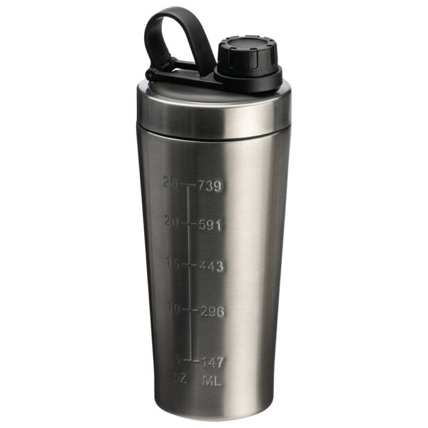 Fabricado en acero inoxidable de alta calidad, este shaker es resistente a golpes y rayones, manteniendo tus bebidas a la temperatura ideal. Su diseño con tapa hermética y tecnología antiderrame te permite llevarlo con confianza a cualquier lugar. Con una capacidad de 760 ml y válvula flexible, es cómodo de usar y fácil de limpiar.