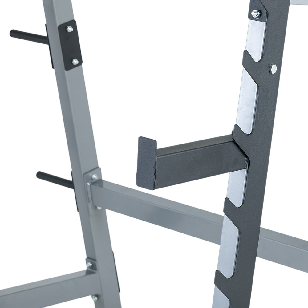 Diseñado para ofrecer la máxima seguridad y estabilidad durante tus entrenamientos de sentadillas. Su construcción resistente y ajustable se adapta a tus necesidades, brindándote la confianza necesaria.