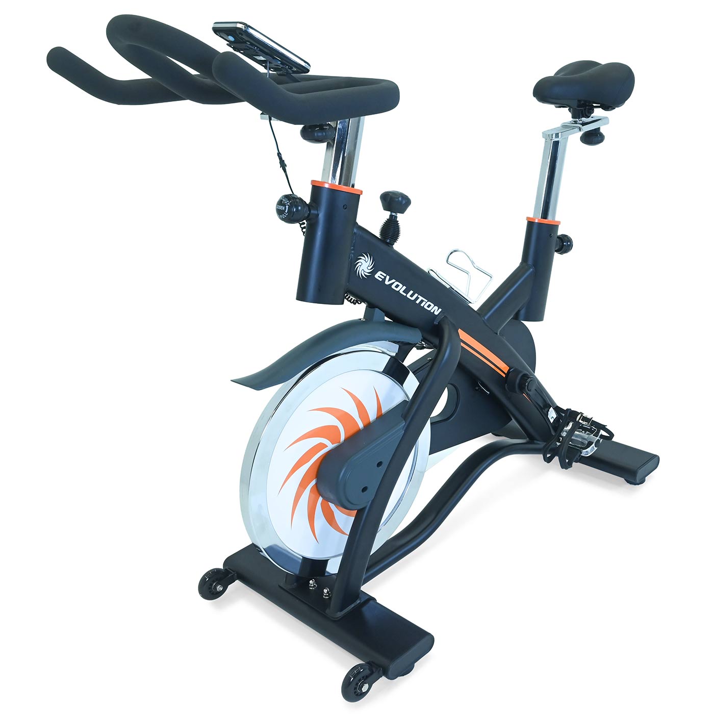 • La bicicleta spinning Evolution EVO Río es ideal para incrementar el nivel de tus entrenamientos, gracias a su firme estructura y volante de 20 kg, te brindarán mayor estabilidad y equilibrio al pedalear.
