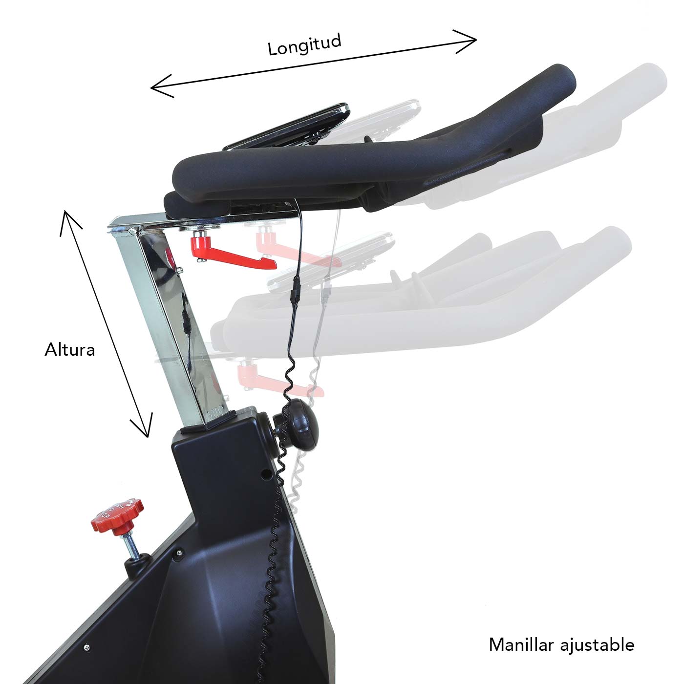 Manillar: inclinado, ajustable vertical y horizontalmente