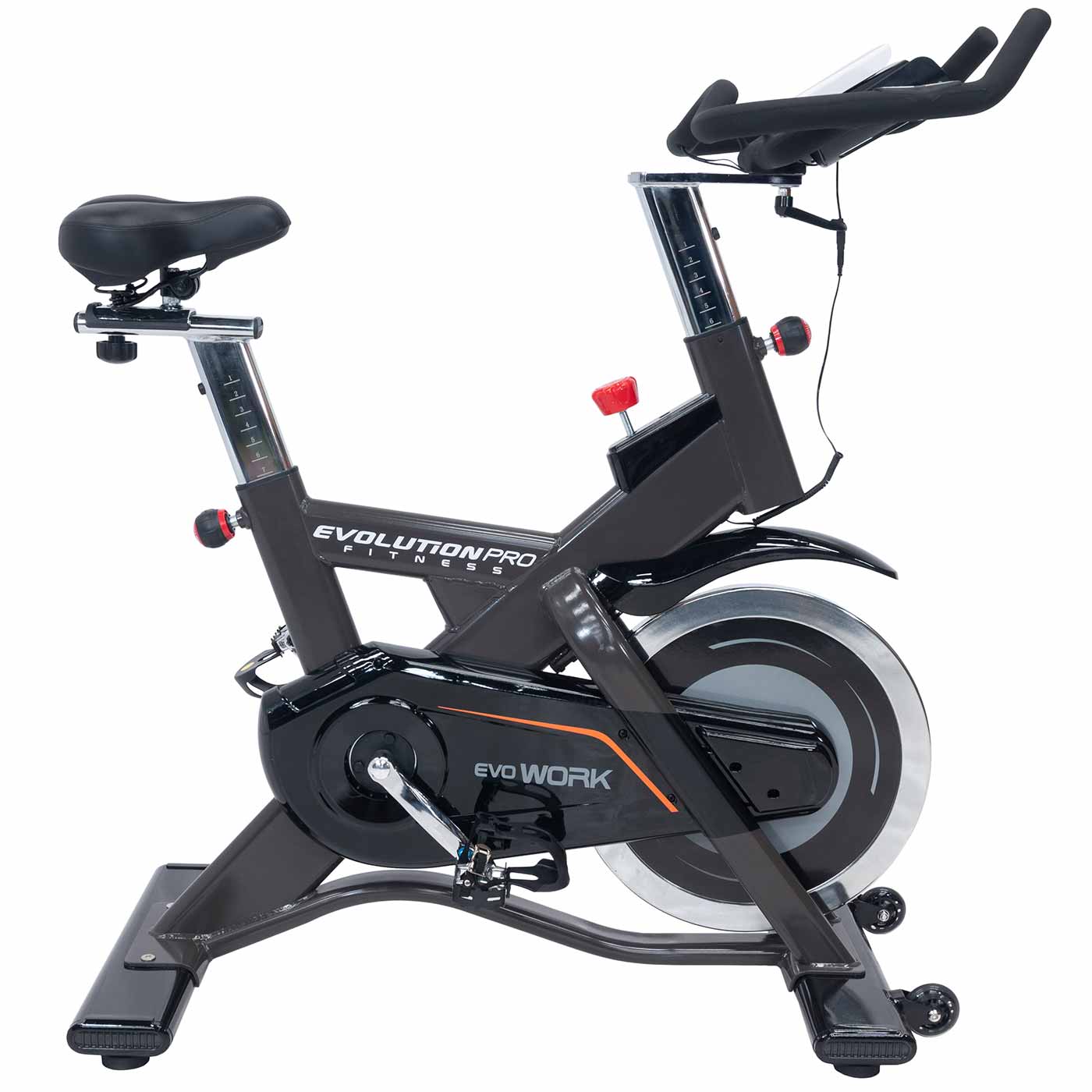 La bicicleta Spinning Evolution EVO WORK es perfecta para incrementar el nivel de sus entrenamientos, gracias a su firme estructura y volante delantero de 22 kg. Esta máquina para hacer ejercicios le brindará mayor estabilidad y equilibrio al pedalear, logrando tonificar brazos, glúteos y piernas. Incluye ruedas de desplazamiento para su fácil desplazamiento y pueda entrenar en cualquier parte de la casa.