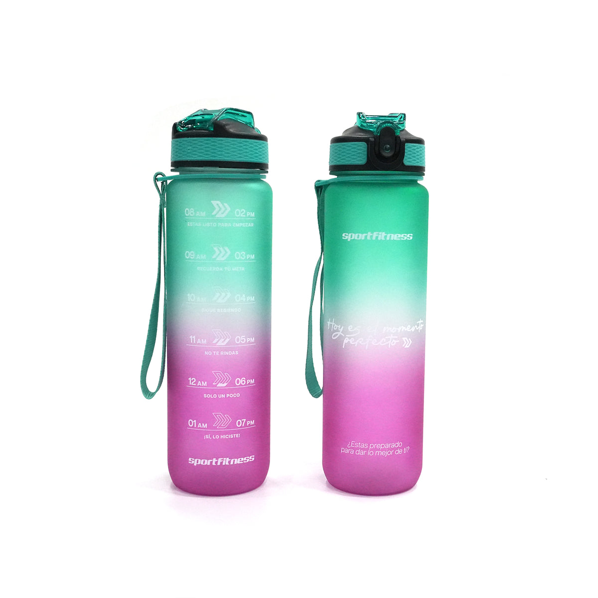 Esta botella deportiva bicolor está diseñada para quienes necesitan mantenerse hidratados en todo momento. Con una generosa capacidad de 1 litro, es la compañera perfecta para tus sesiones de ejercicio más intensas, largas caminatas o simplemente para asegurar tu consumo diario de agua.