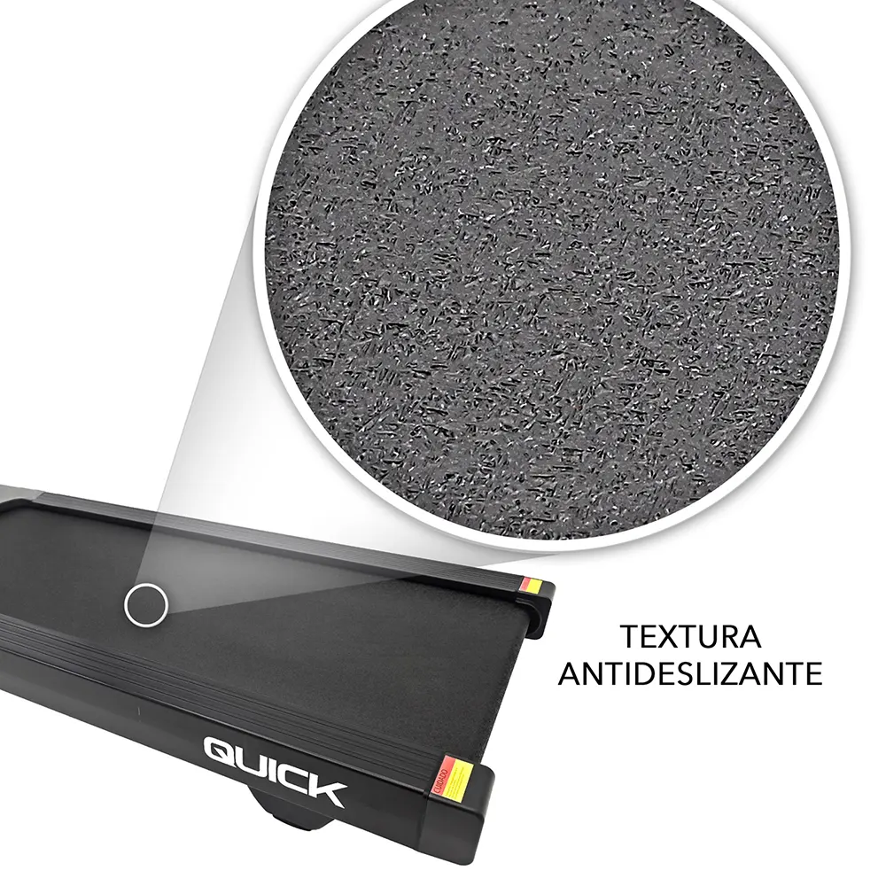 La Trotadora Evolution EVO Quick está diseñada para ofrecer entrenamientos dinámicos y personalizados. Su área de trote de 130 × 48 cm proporciona espacio suficiente para correr con seguridad y fluidez, mientras el monitor ajustable muestra en tiempo real velocidad, calorías, distancia, tiempo y pulso. El sensor en el manillar ayuda a controlar la frecuencia cardíaca, optimizando cada rutina según los objetivos del usuario.