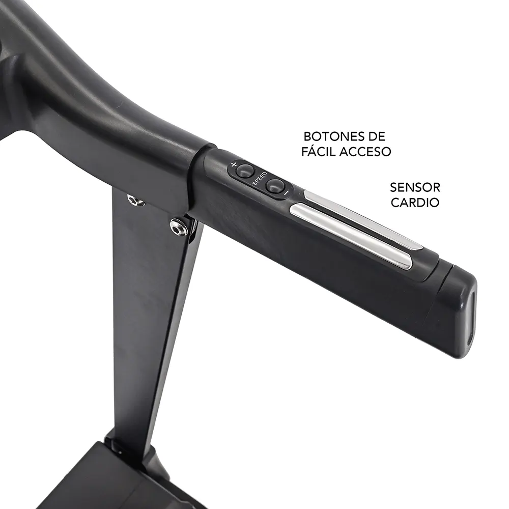 - Monitor: velocidad, calorías, distancia, tiempo, pulso