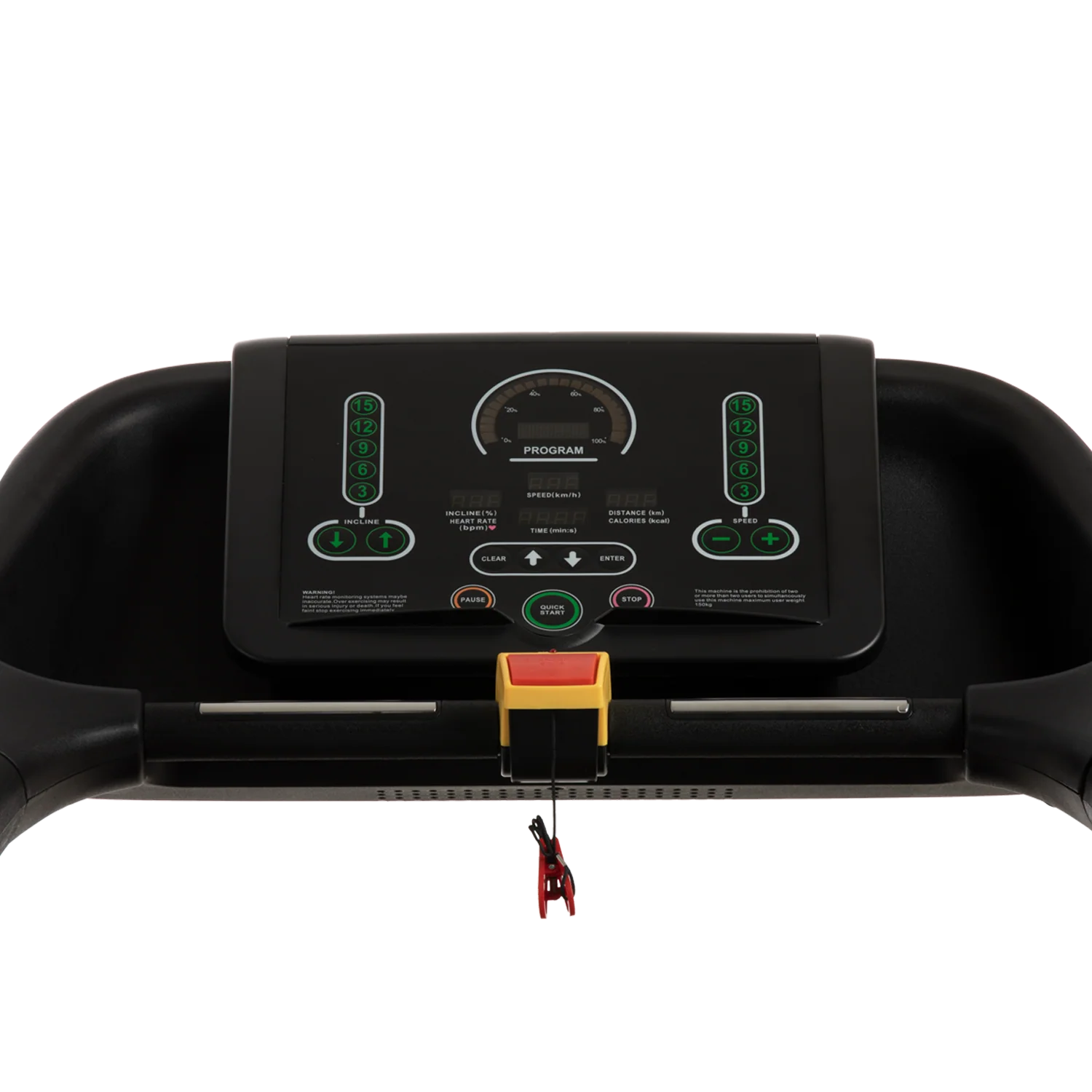 Equipada con una pantalla de entrenamiento que muestra velocidad, tiempo, distancia, calorías y frecuencia cardíaca, permite controlar cada sesión de forma precisa. Dispone de 5 programas preestablecidos + 2 de usuario, que ofrecen rutinas adaptadas a diferentes niveles y objetivos.