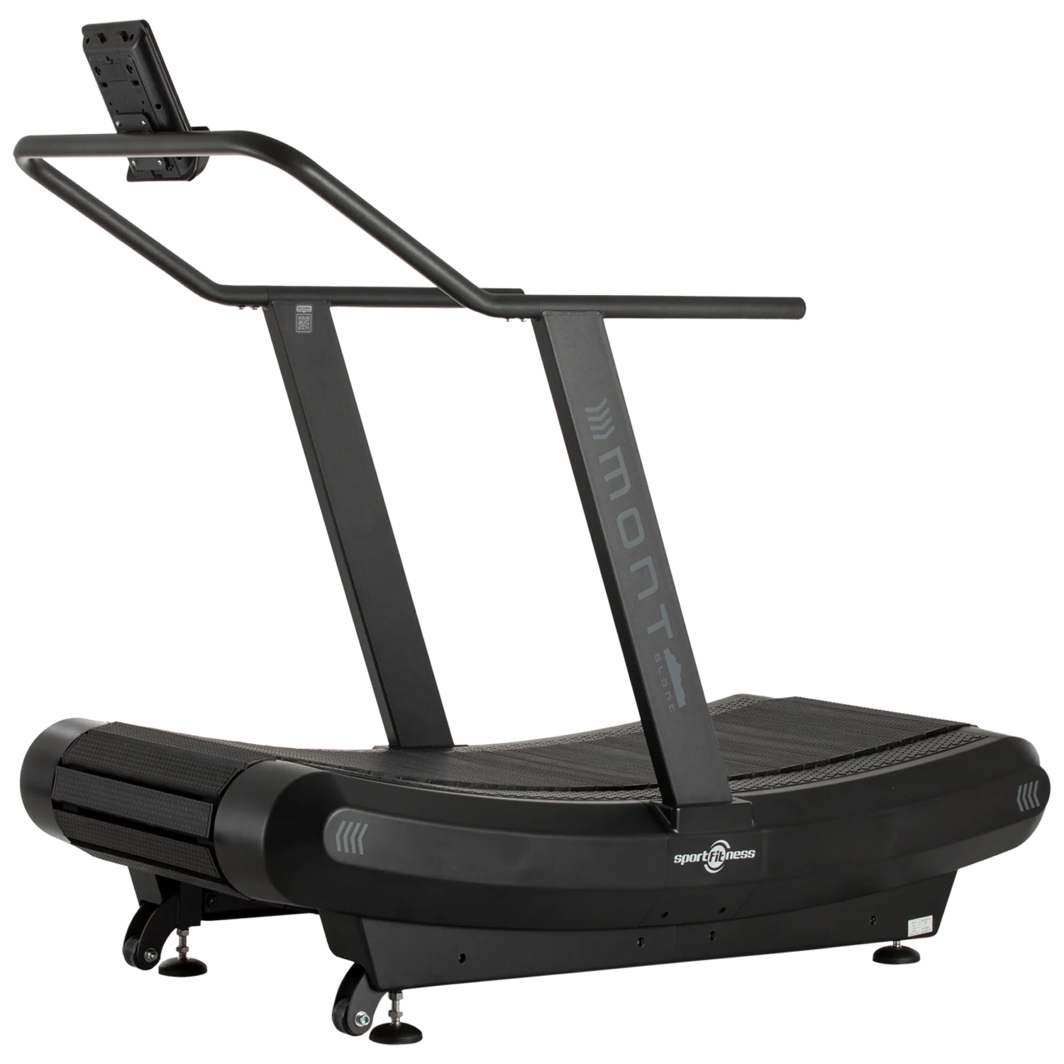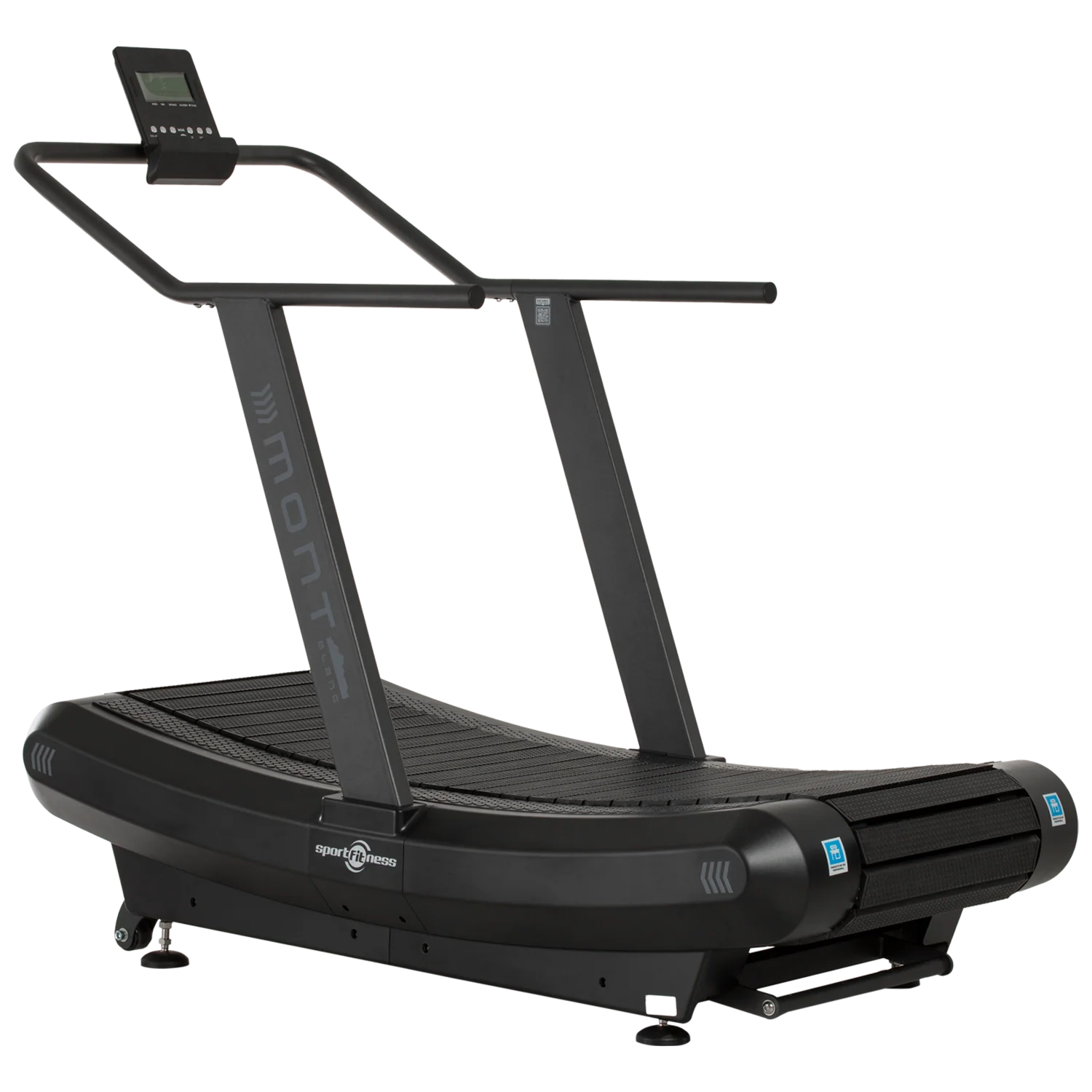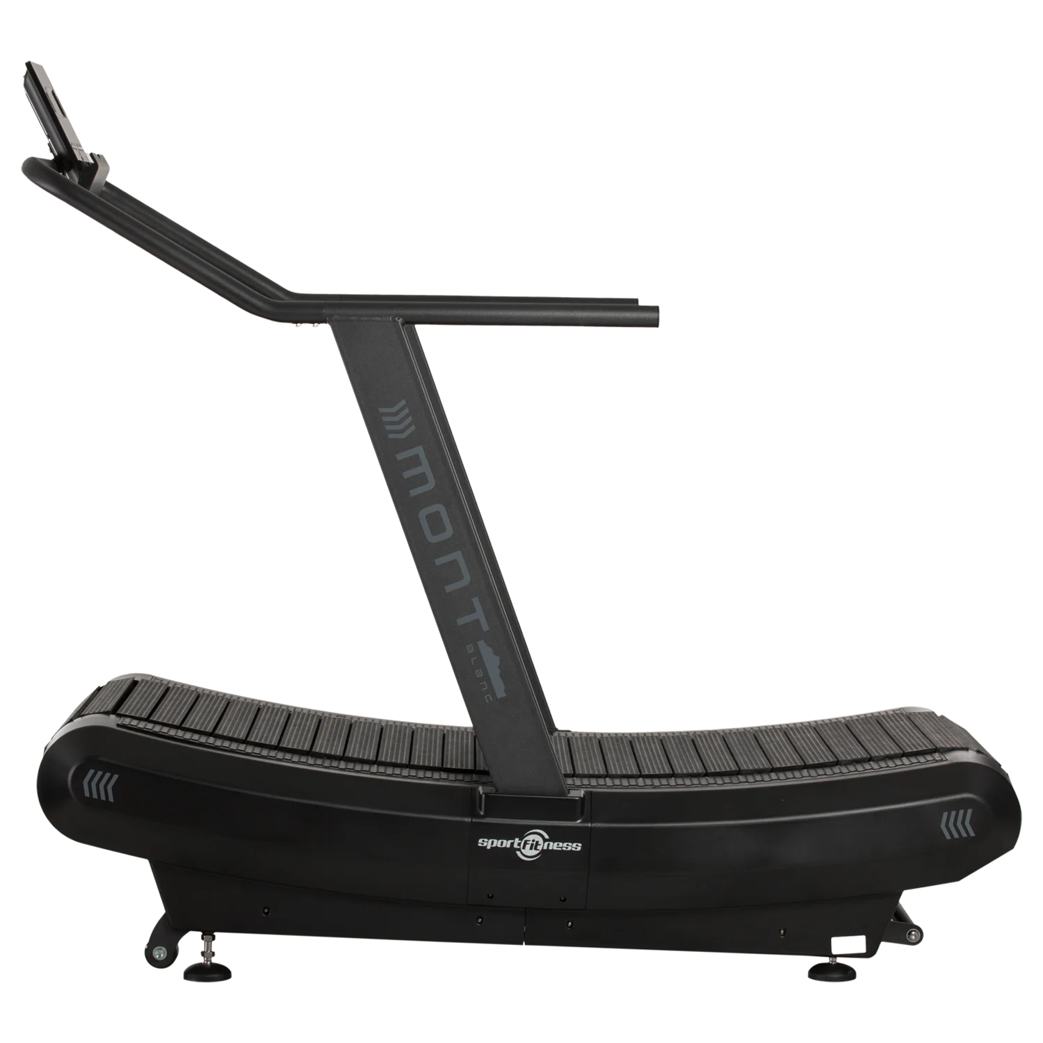 La Trotadora Sportfitness Mont es un equipo profesional no motorizado con banda curva, ideal para entrenamientos de alto rendimiento en gimnasios y centros deportivos. Su diseño permite alcanzar velocidad ilimitada, soporta hasta 150 kg y ofrece una superficie amplia para mejorar la técnica de carrera y realizar rutinas de alta intensidad.