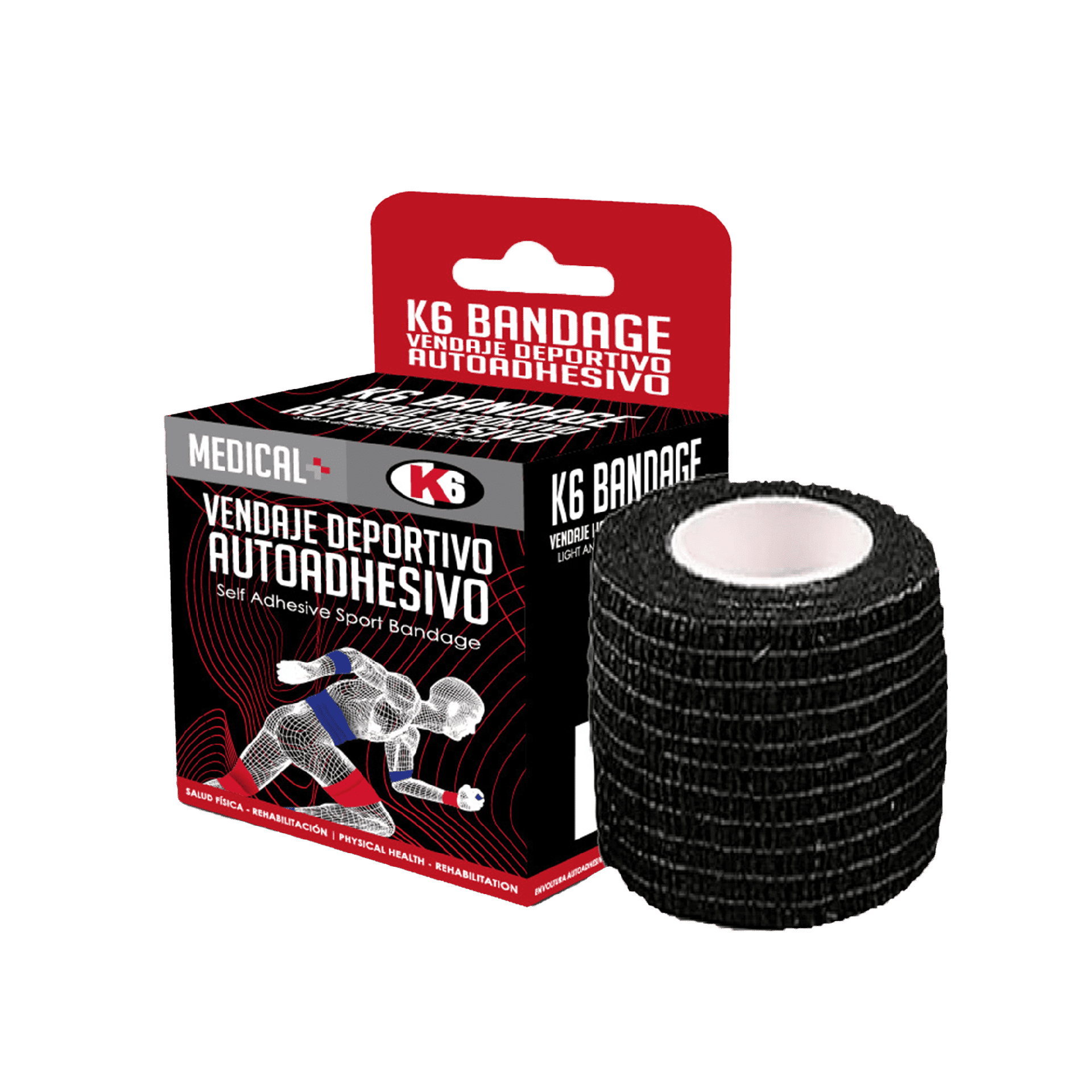 Este vendaje deportivo K6 es una cinta elástica autoadhesiva diseñada para brindar soporte y protección inmediata a los músculos durante cualquier actividad física. Su capacidad autoadhesiva permite fijarla sin necesidad de clips o sujetadores externos.